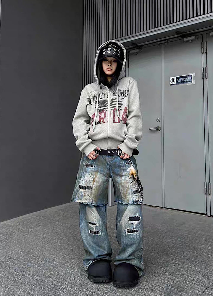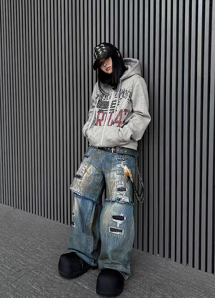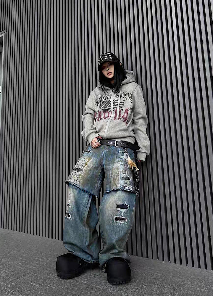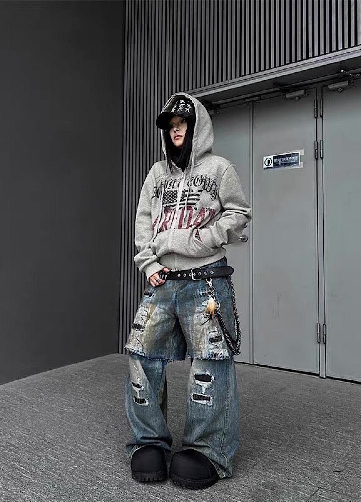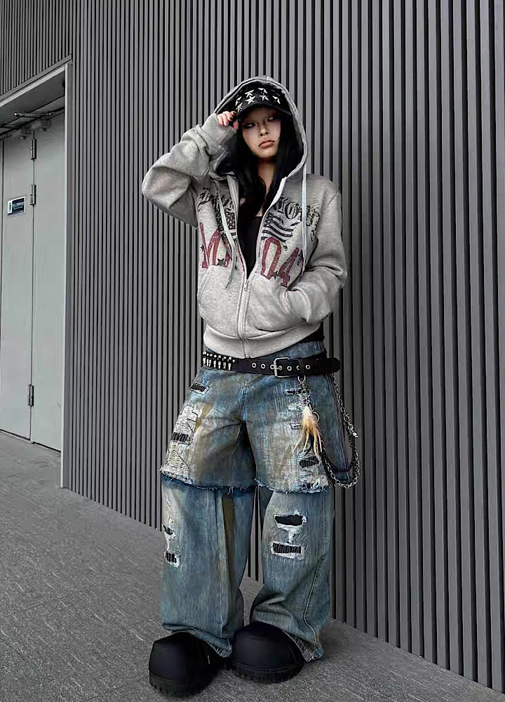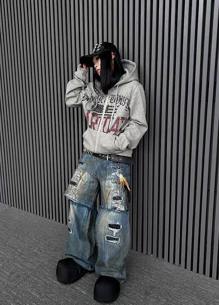 フロントデザインが施されたパーカーアイテム。