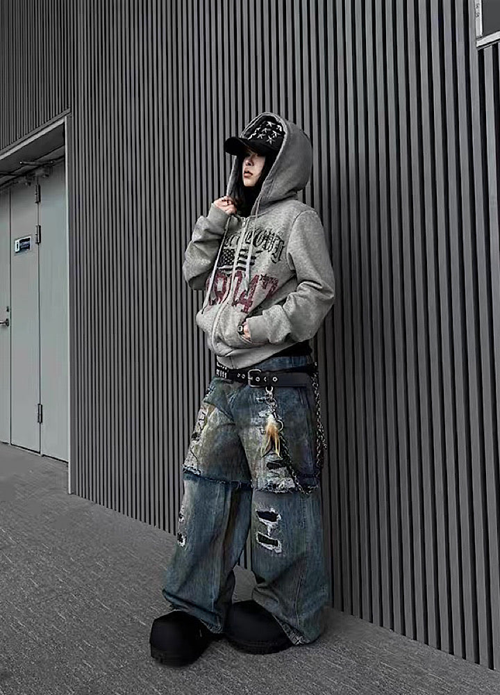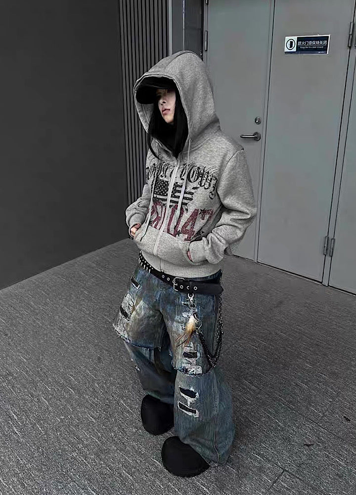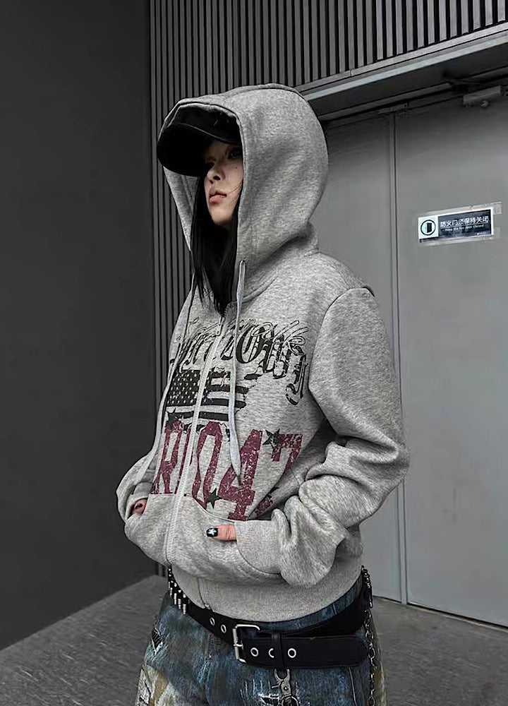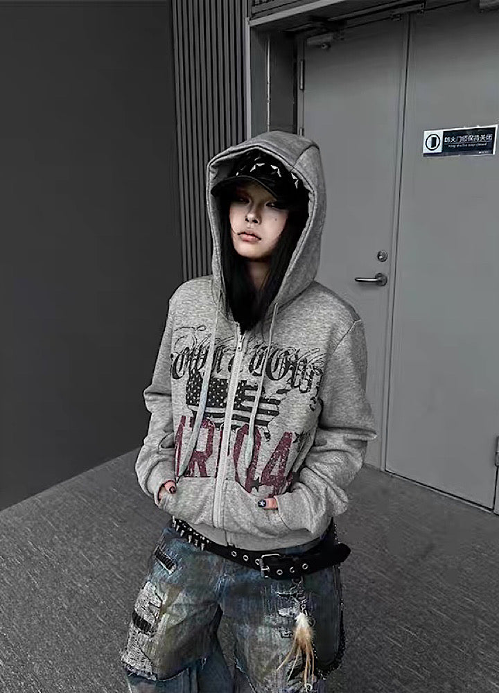 【TR BRUSHSHIFT】Casual front design full zip short length hoodie TB0087