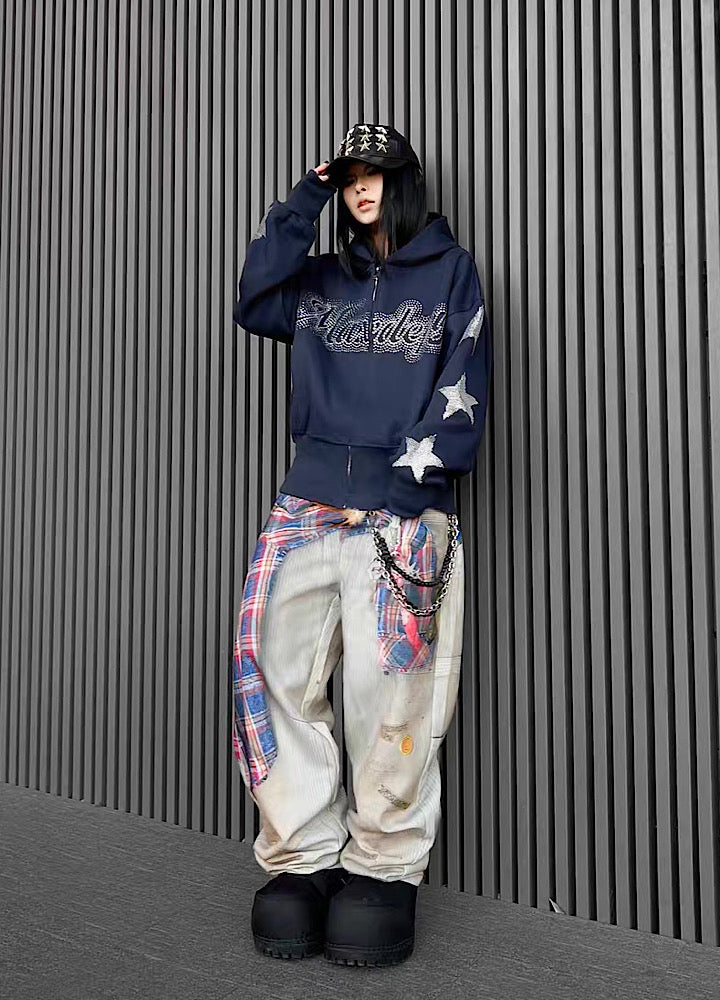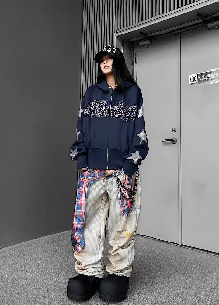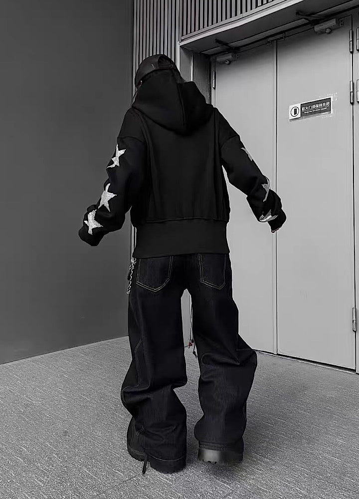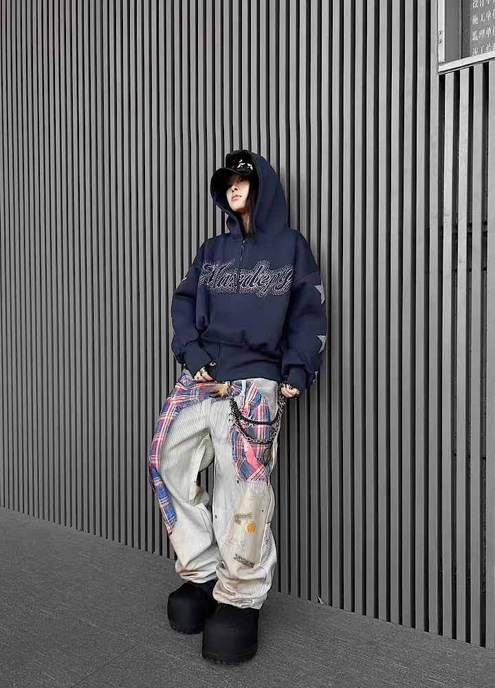【TR BRUSHSHIFT】Silver grid design sleeve front style hoodie TB0089