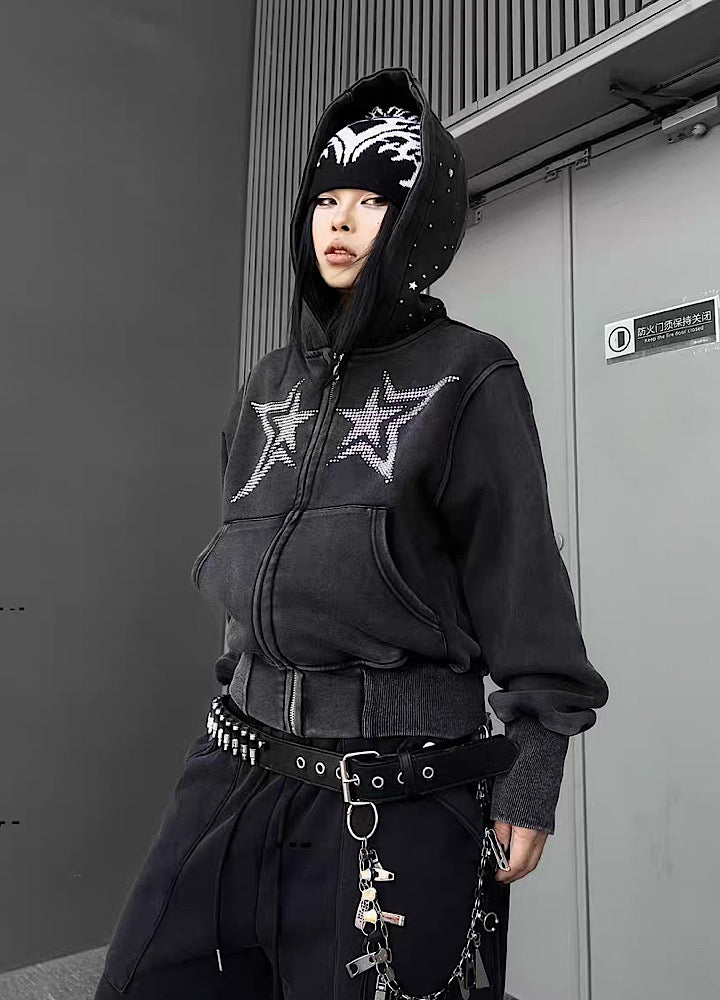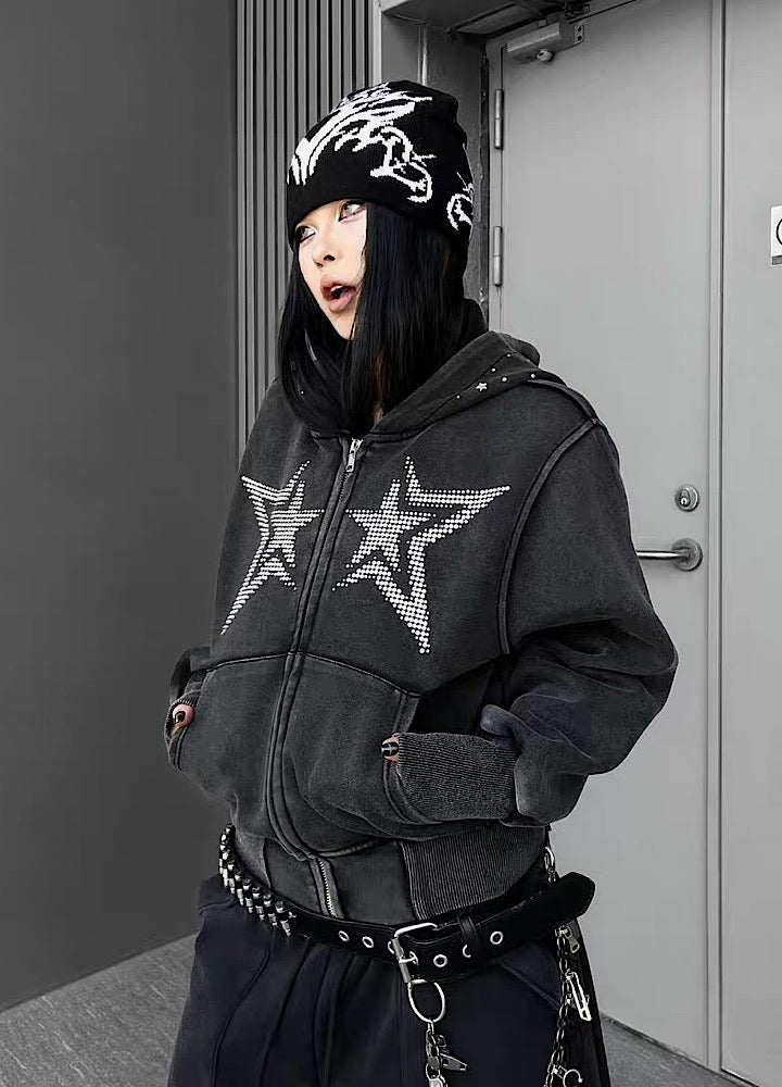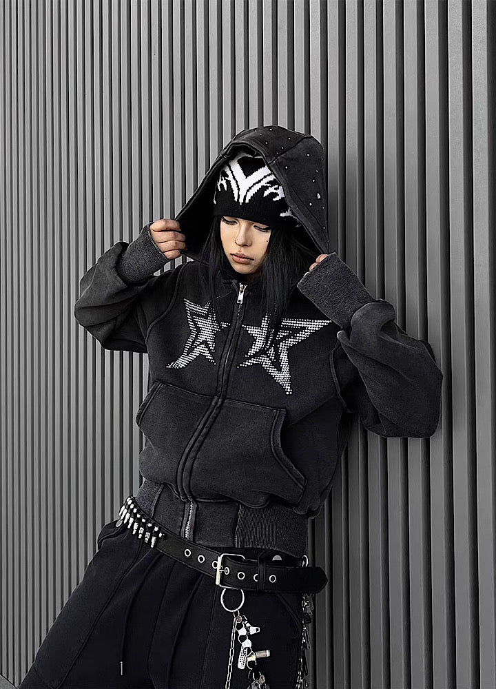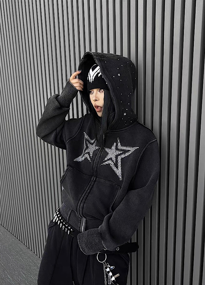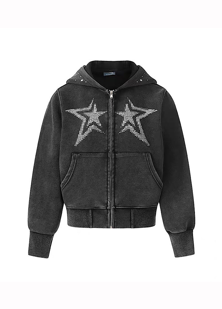 フロントに星柄デザインが施されたパーカーアイテム。