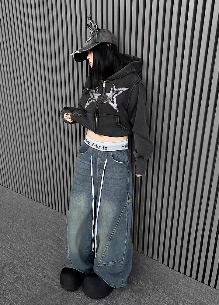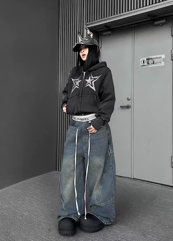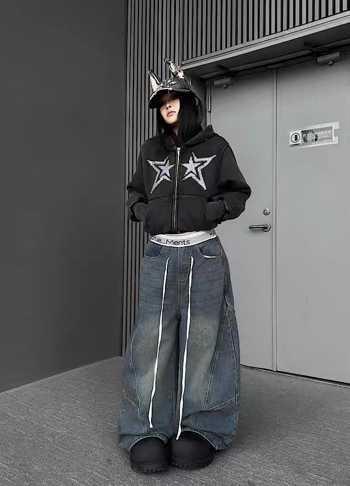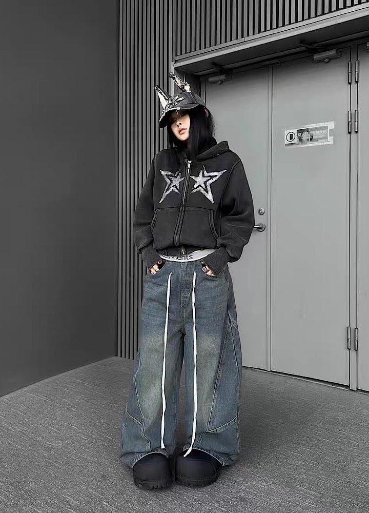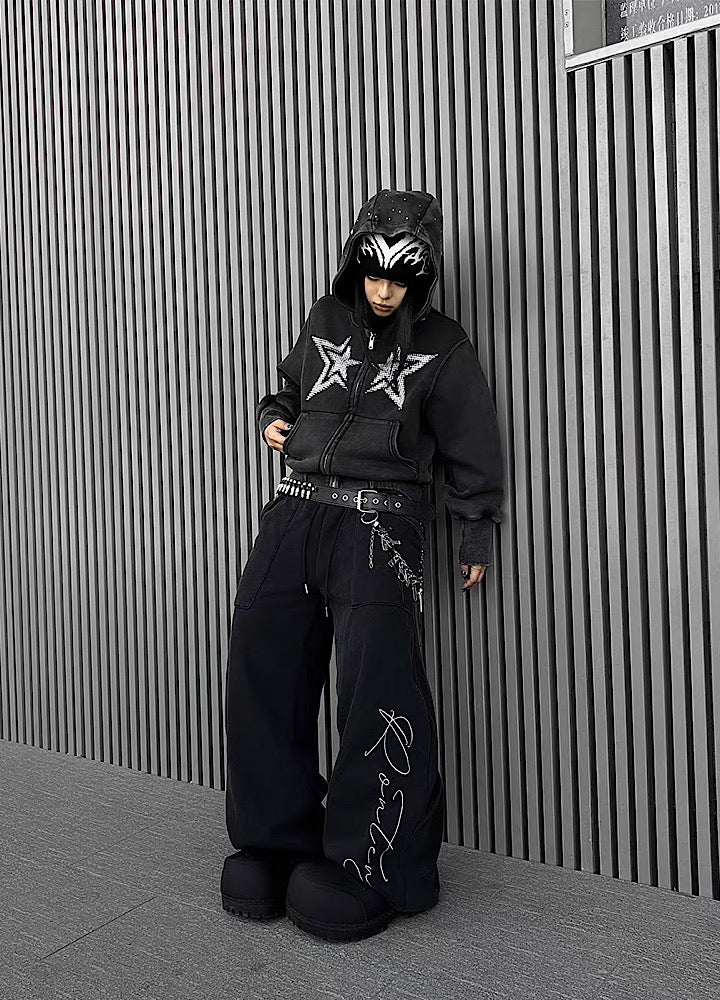 フロントに星柄デザインが施されたパーカーアイテム。