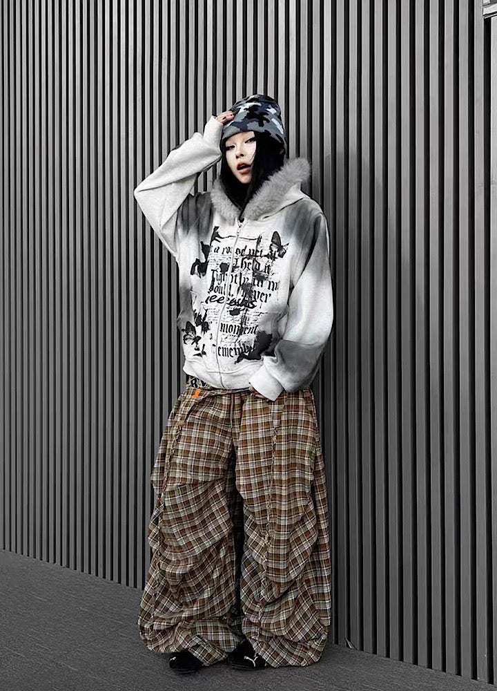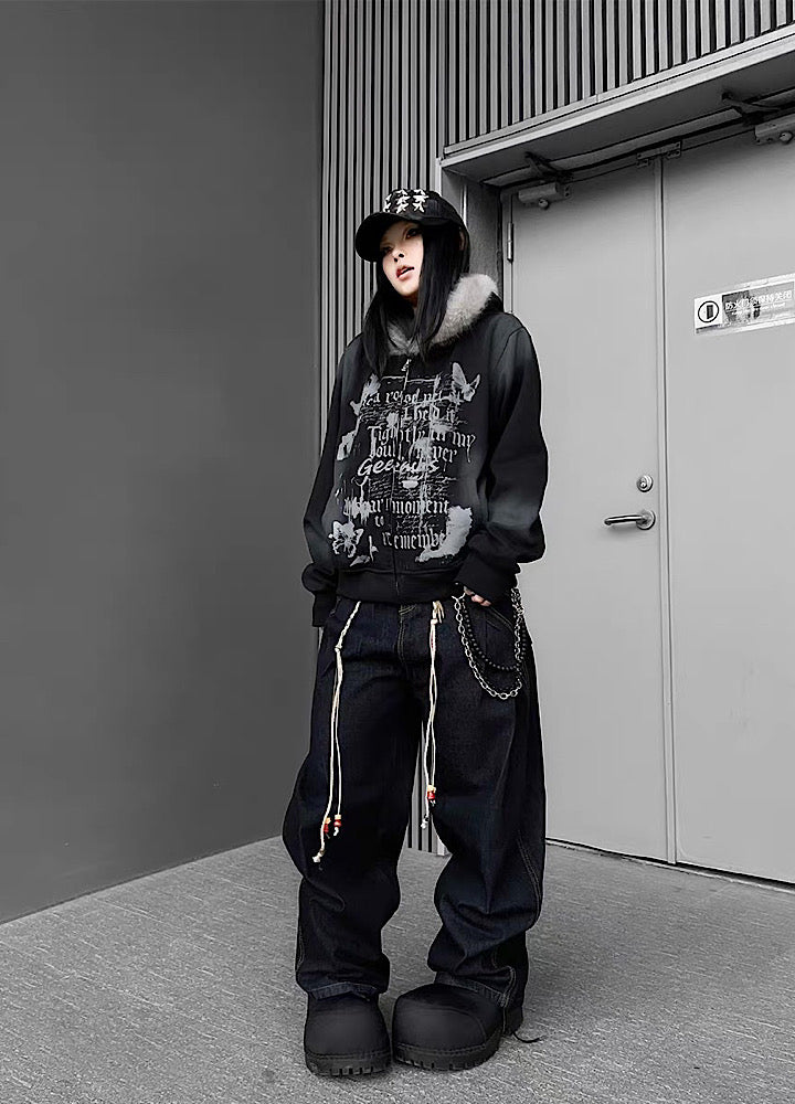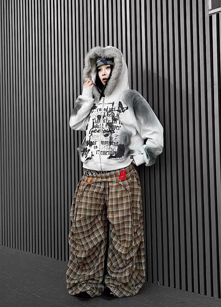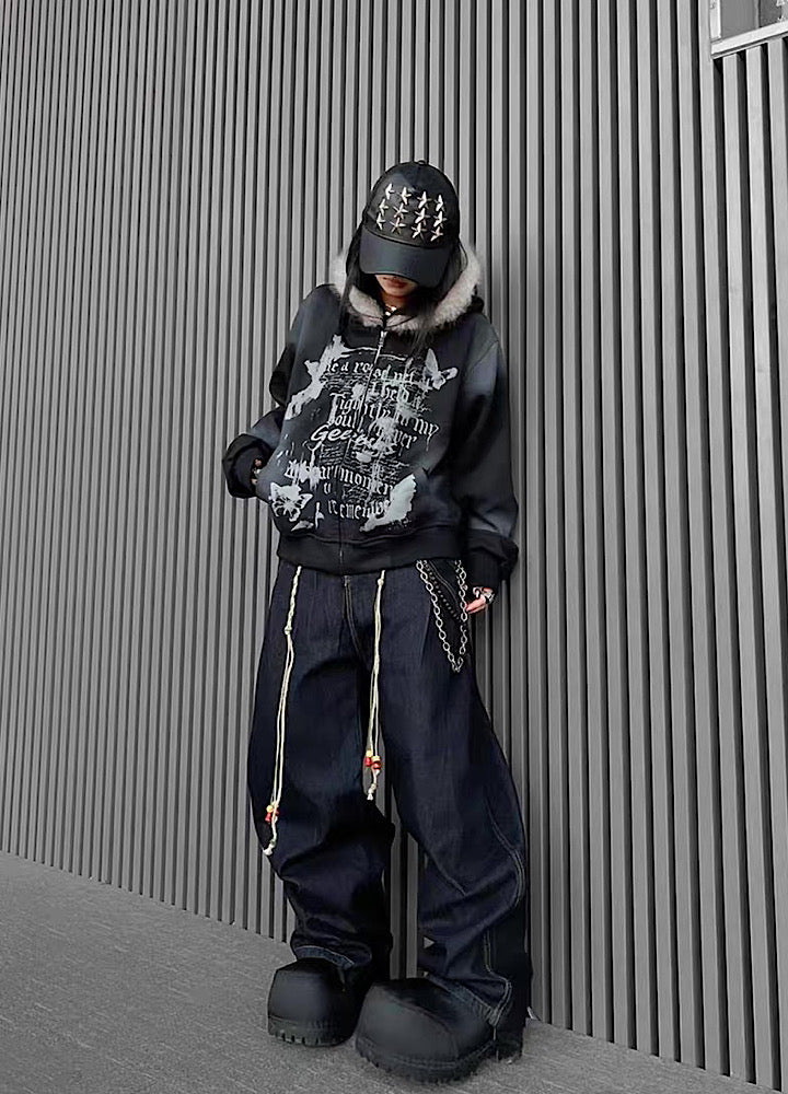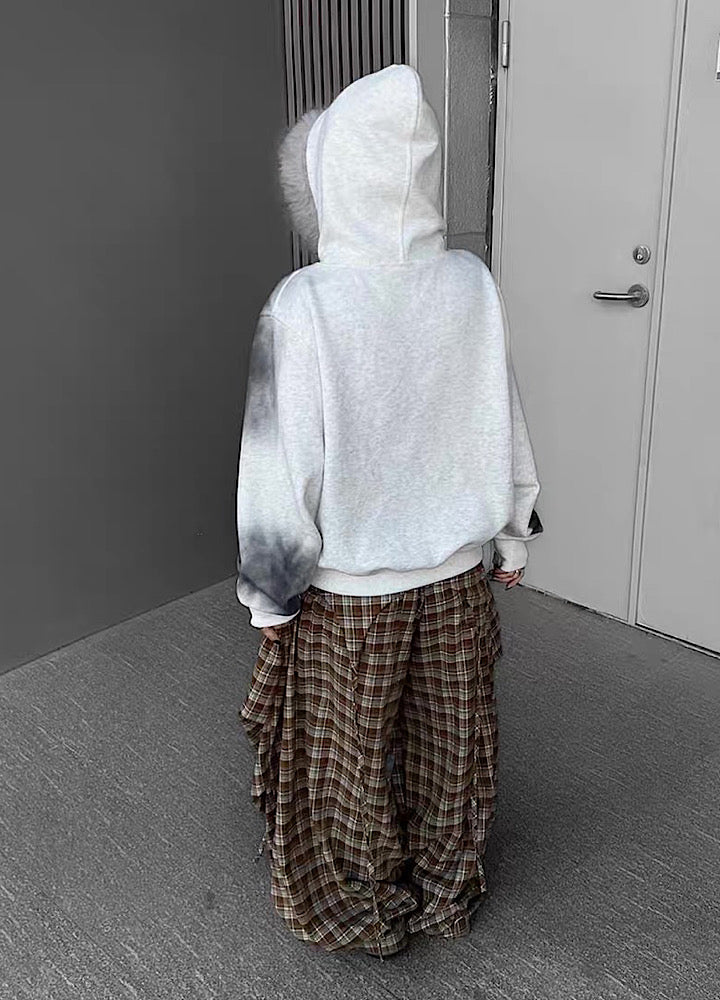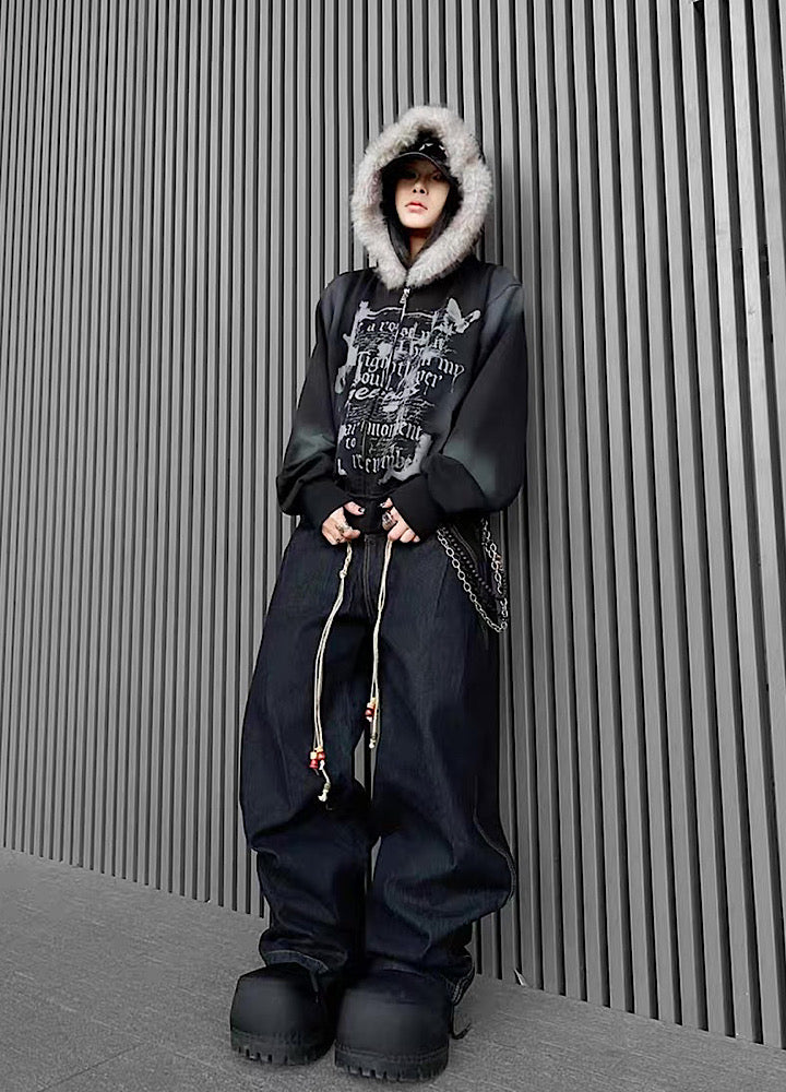 【TR BRUSHSHIFT】Muted wash front design fur hoodie TB0091
