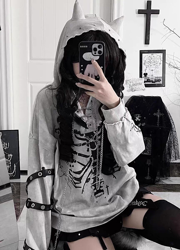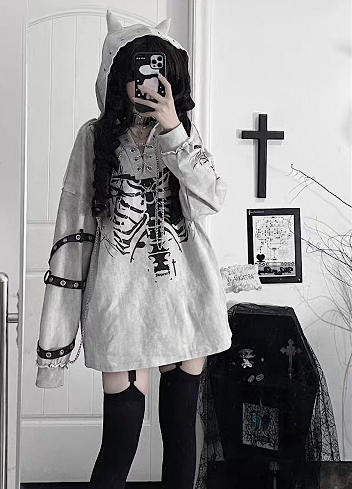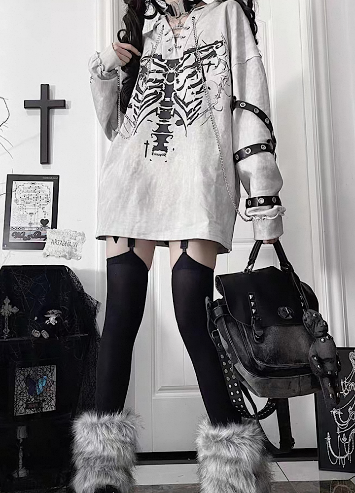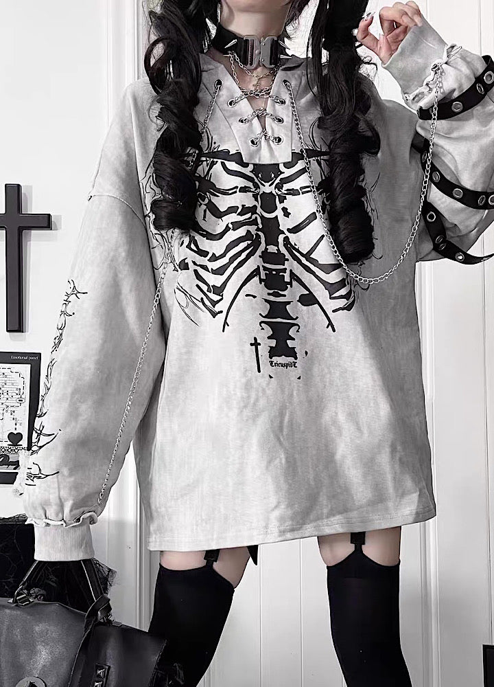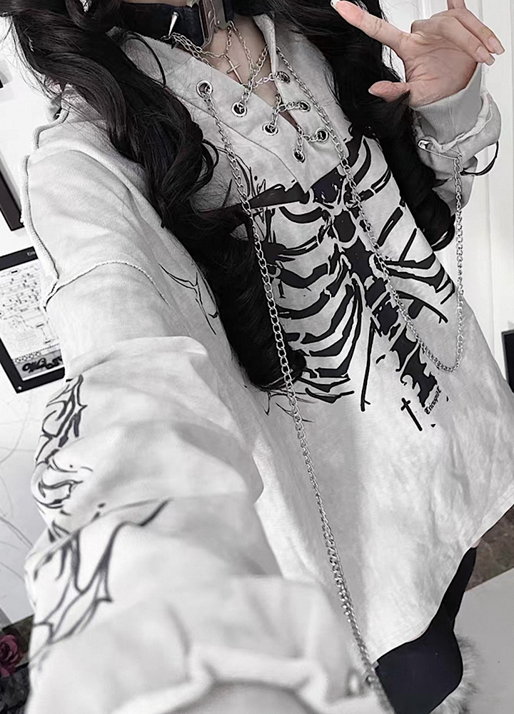 【TricuspidC】Bone Front Illustration Design Chain Style Hoodie TC0009