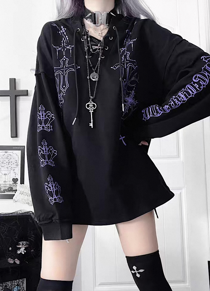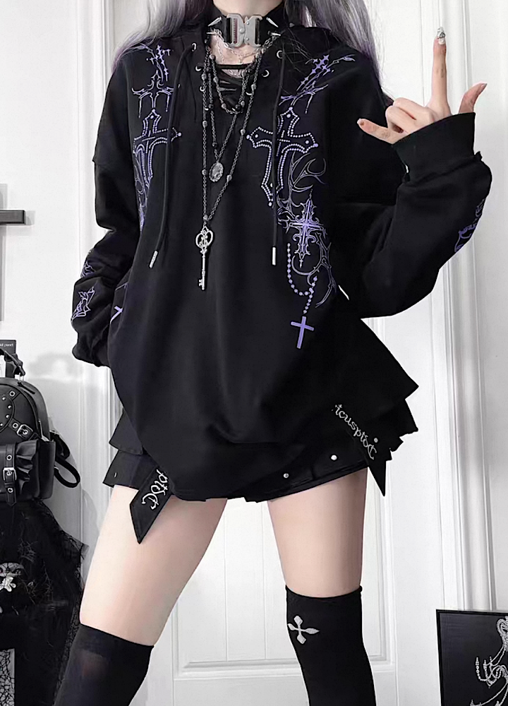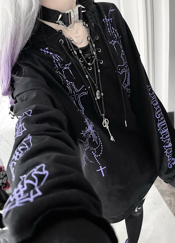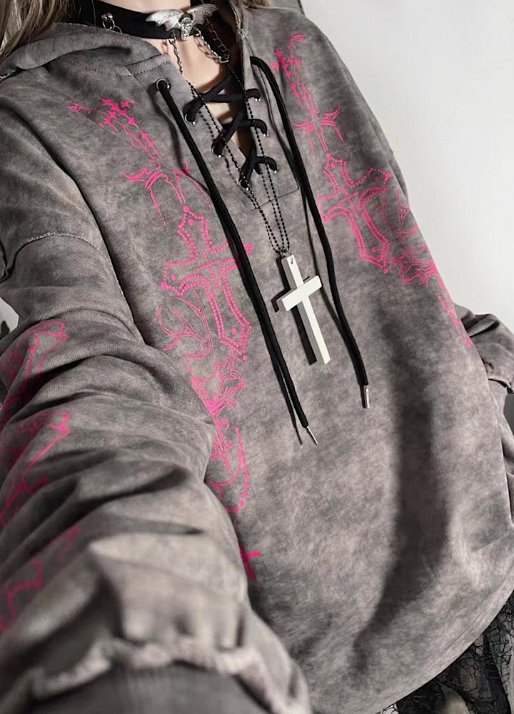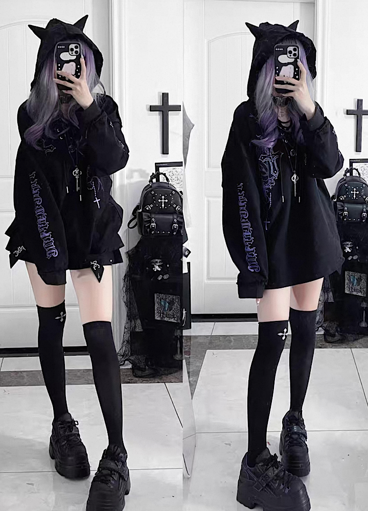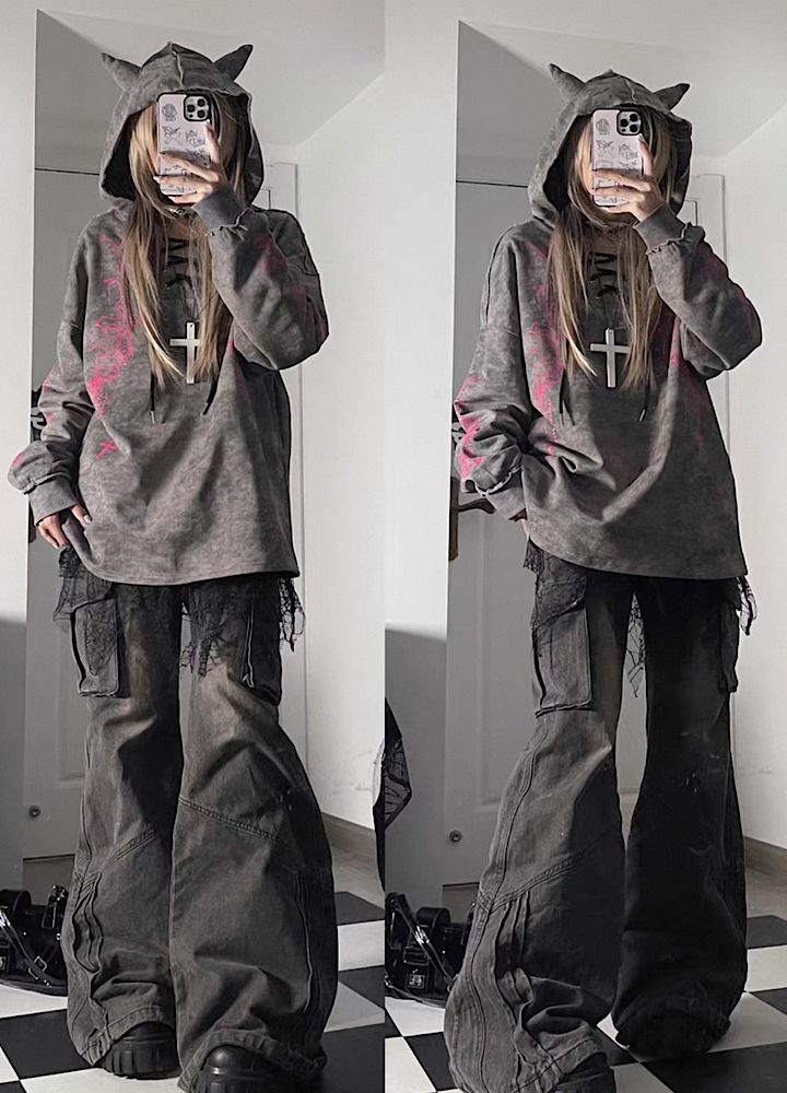 【TricuspidC】Subculture Devil Thunder Design Flip Loose Hoodie TC0008
