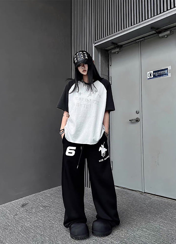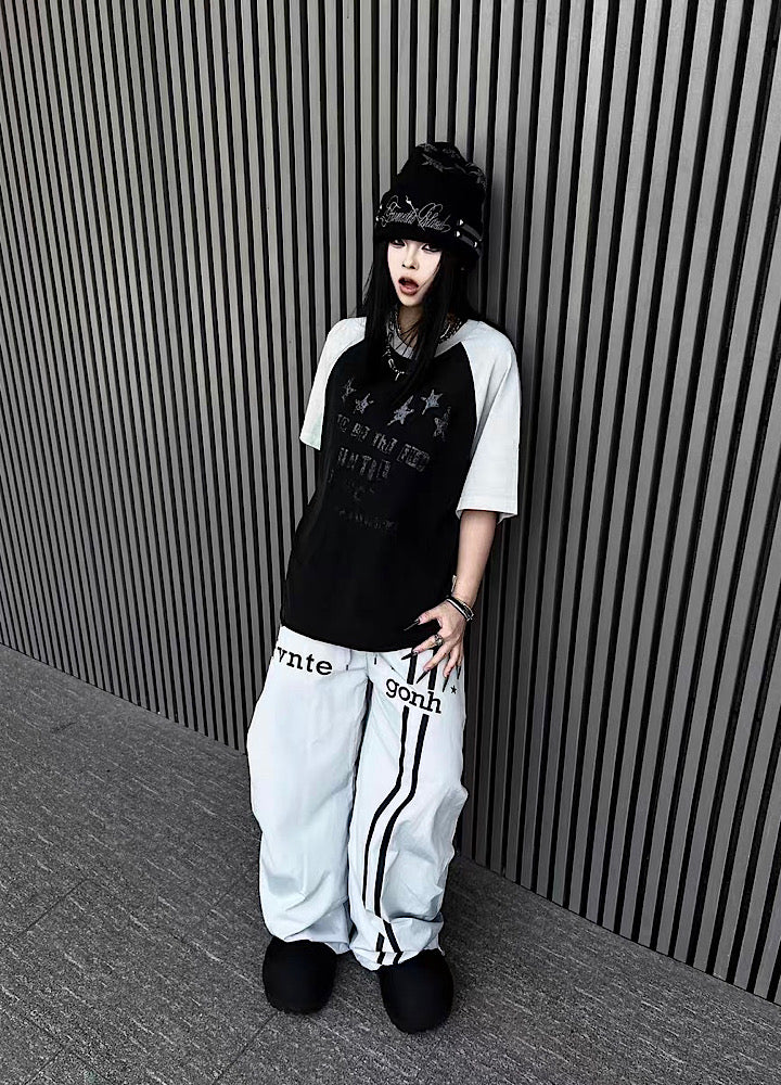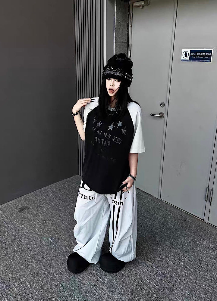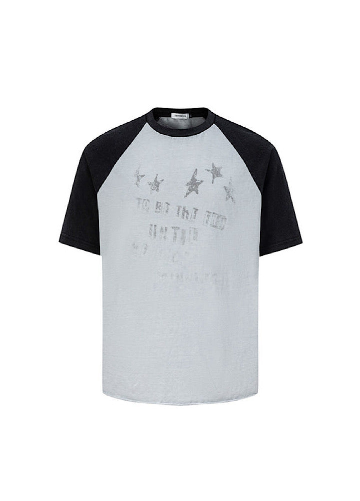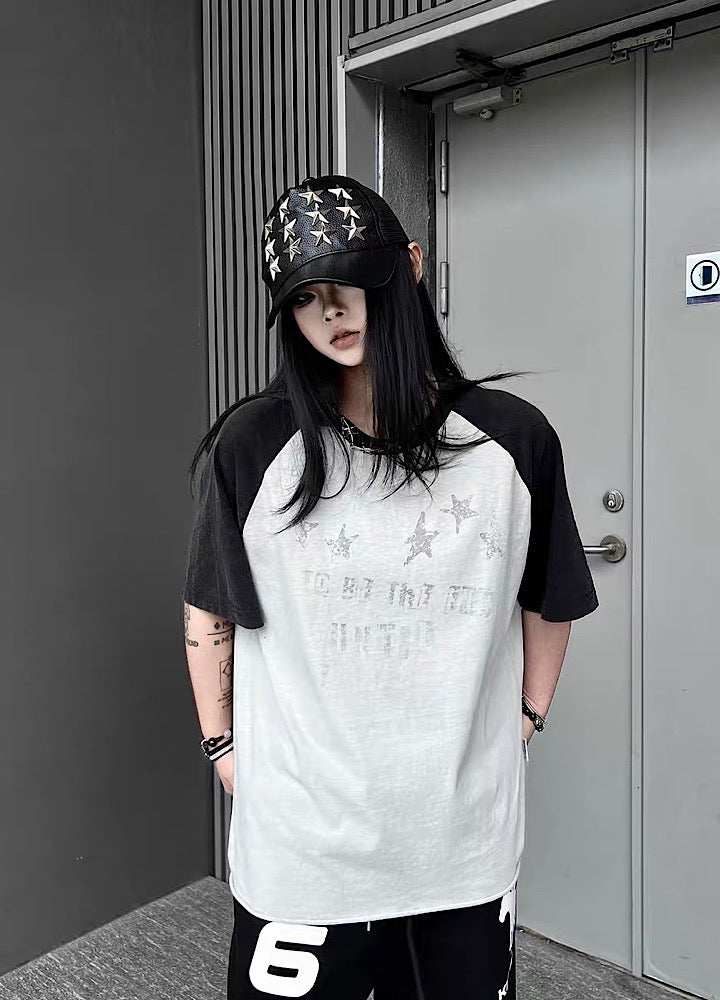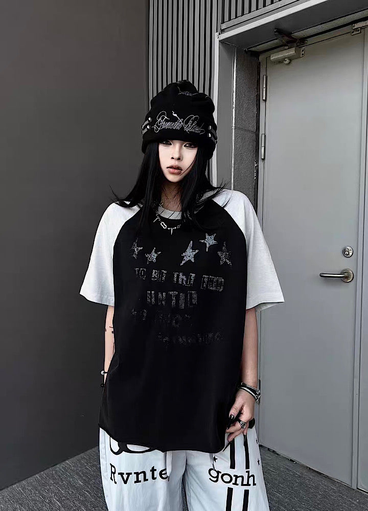 【TR BRUSHSHIFT】Grunge Front Illustration Design Bicolor Oversized Short-Sleeve T-Shirt TB0099