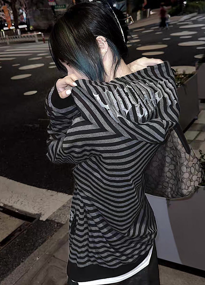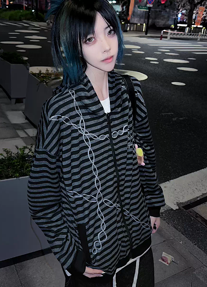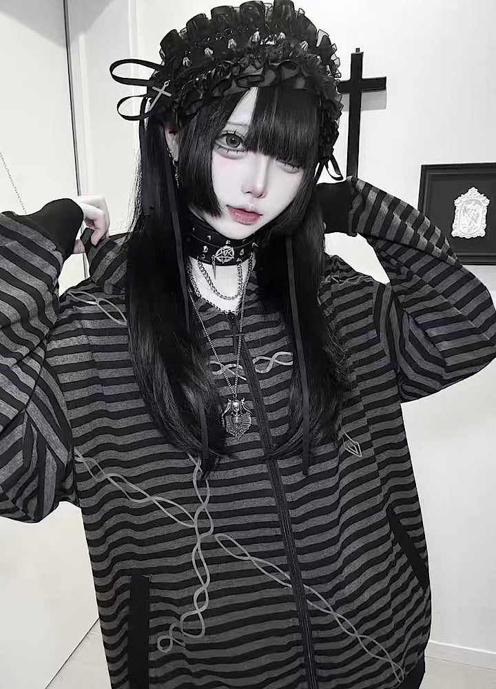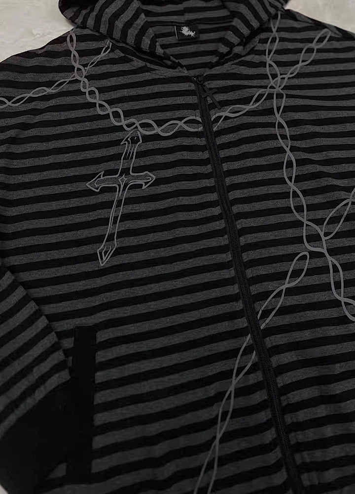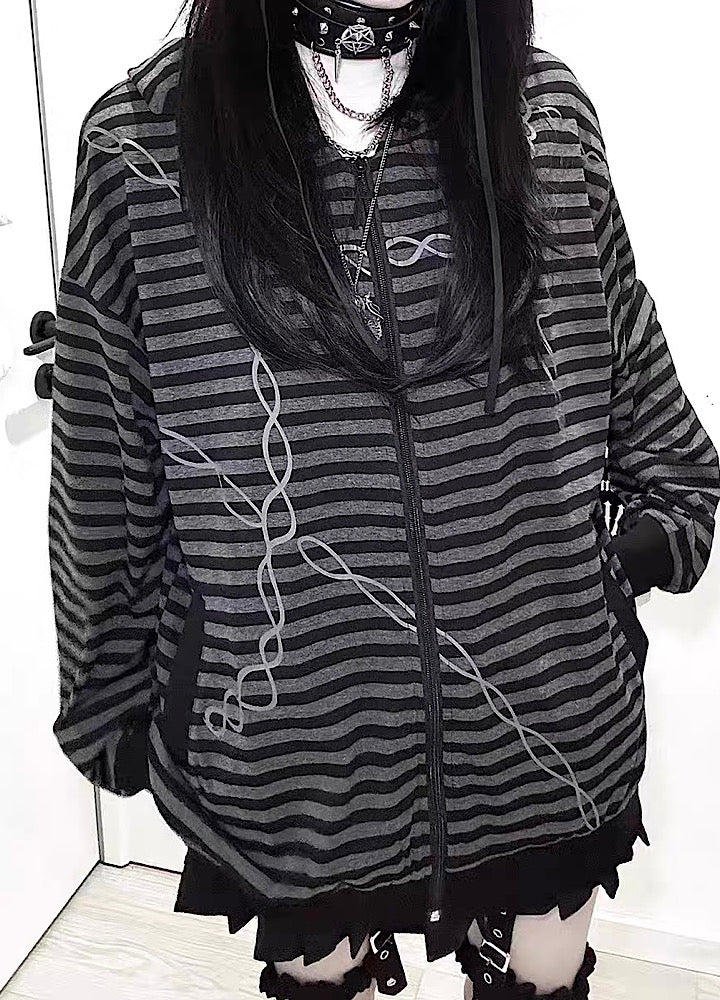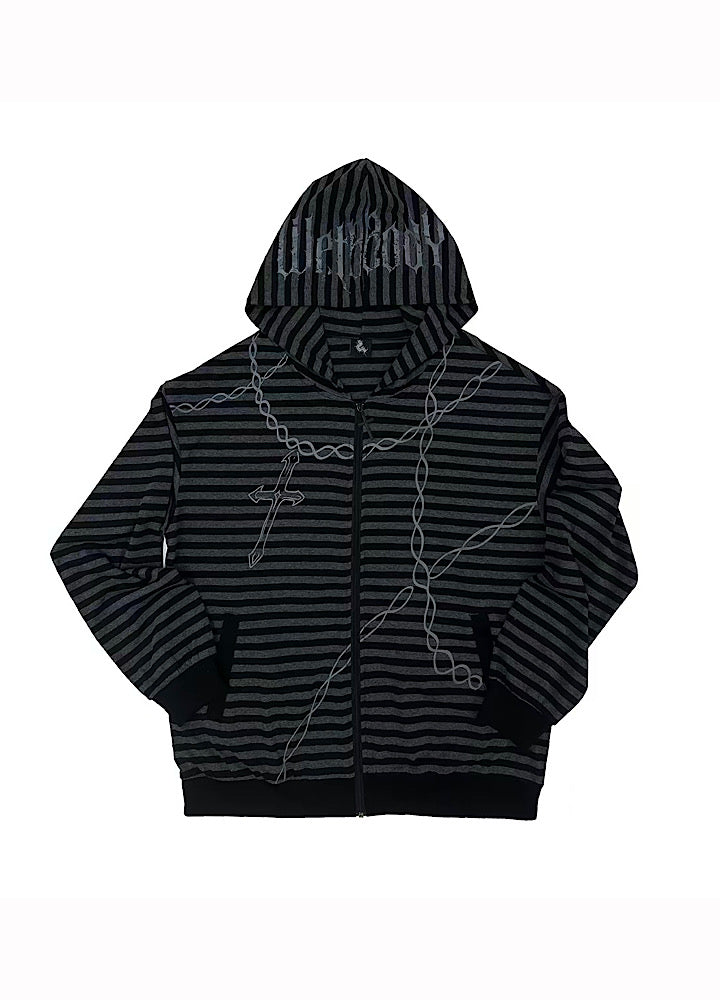 全体的にチェーンとボーダーデザインが施されたパーカーアイテム。