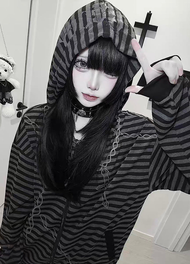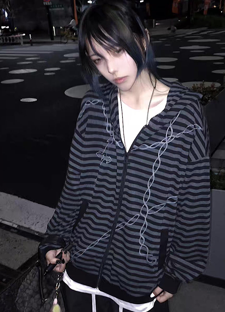 【WETbody】Blood Chain Border Design Full-Zip Lightweight Hoodie  WB0018