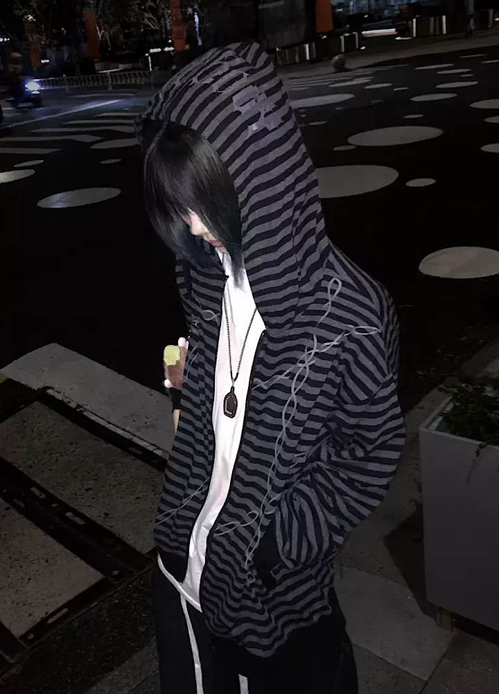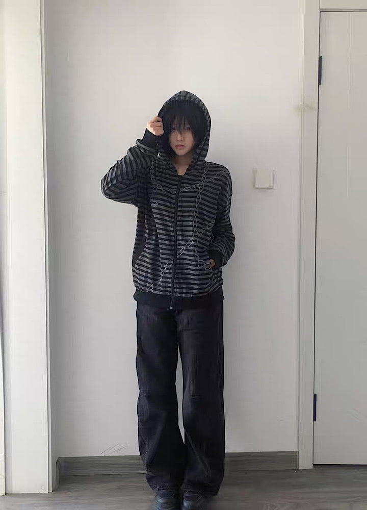 【WETbody】Blood Chain Border Design Full-Zip Lightweight Hoodie WB0018