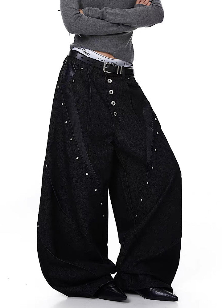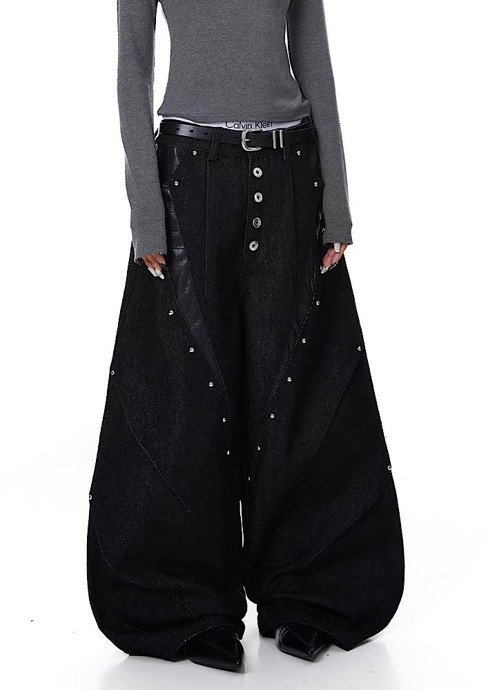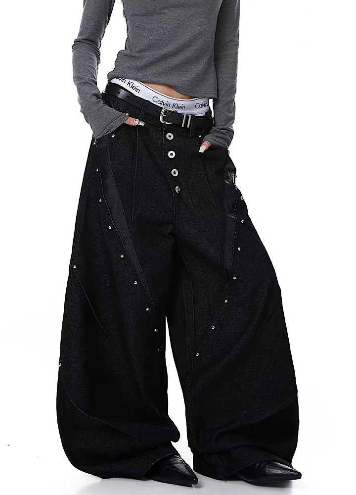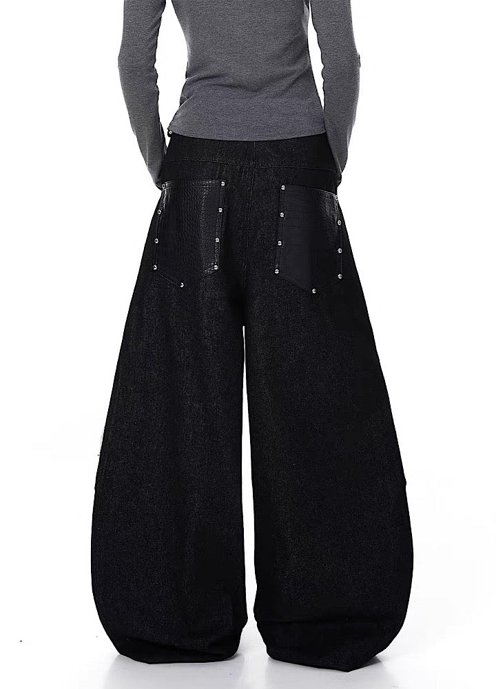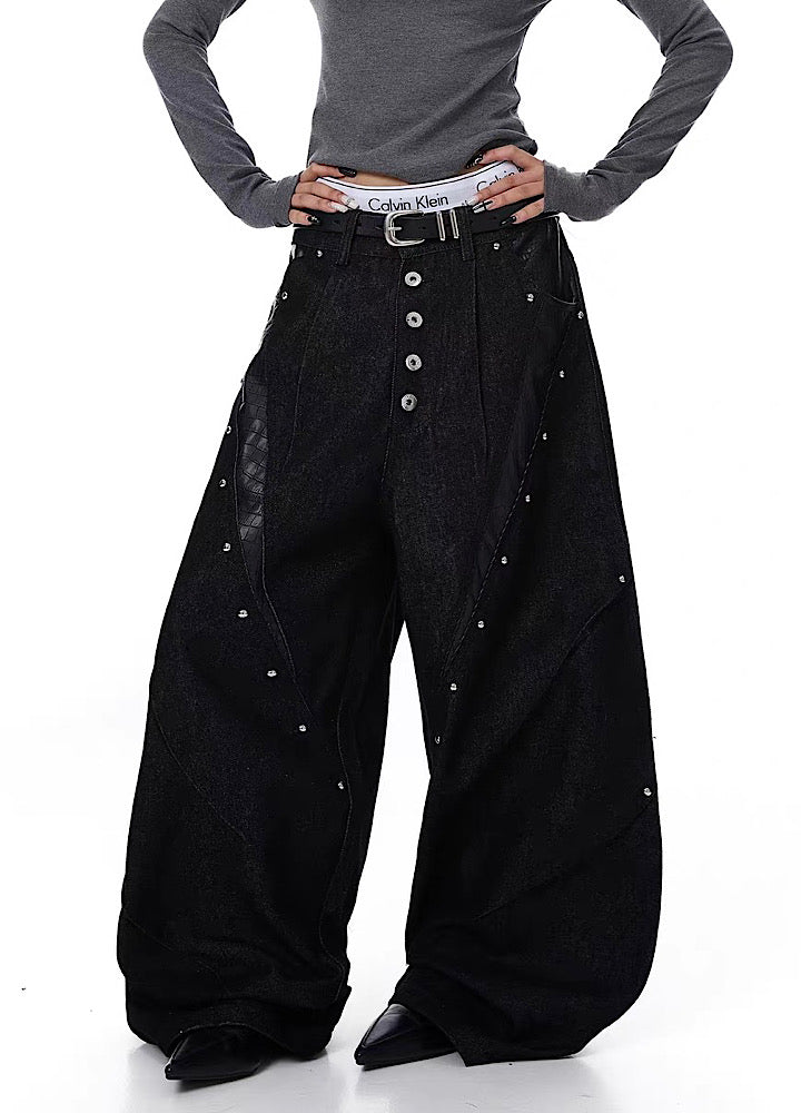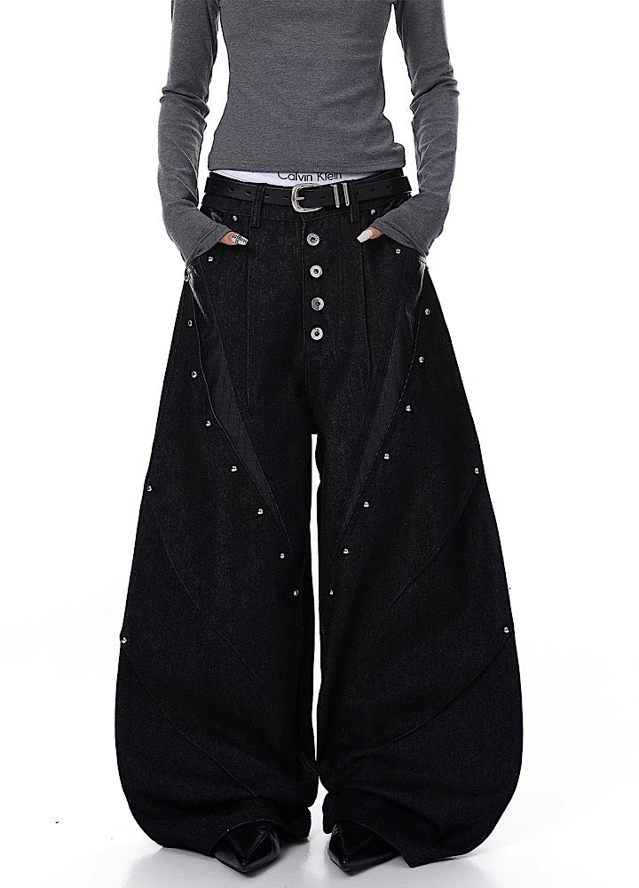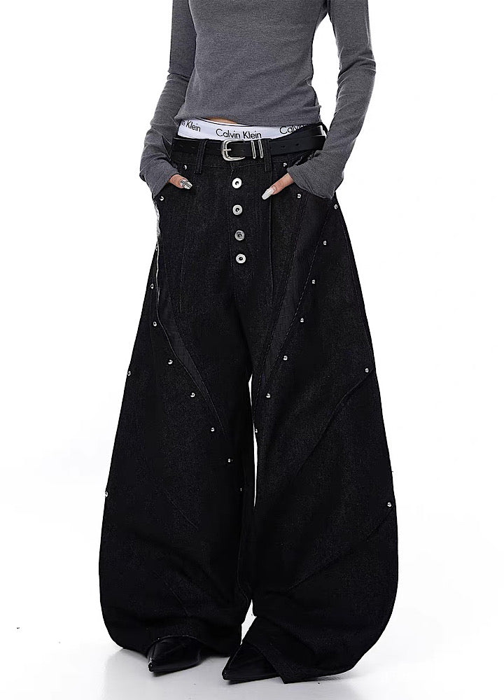 ワイドカーブなシルエットでスタイルよく決まり、タックの入った作りで綺麗な履き方に。