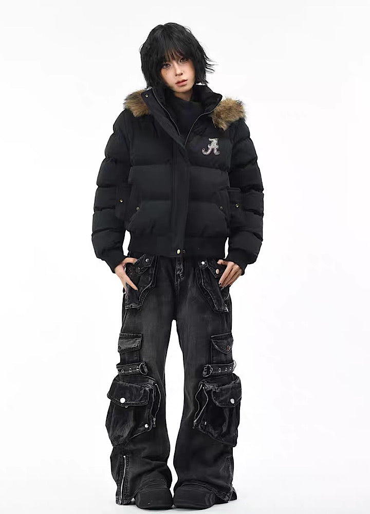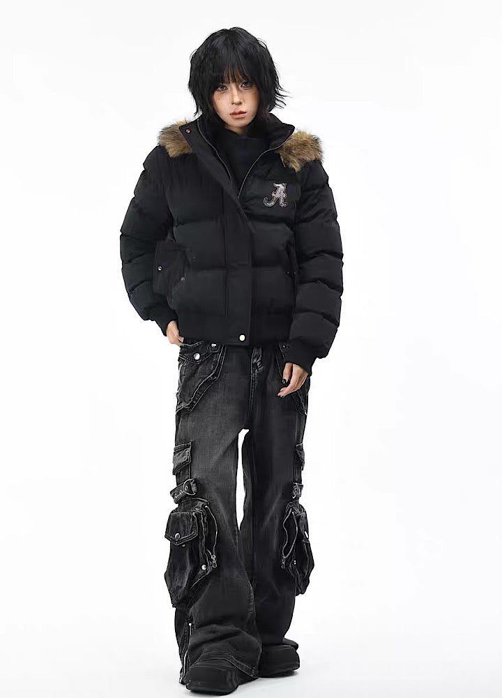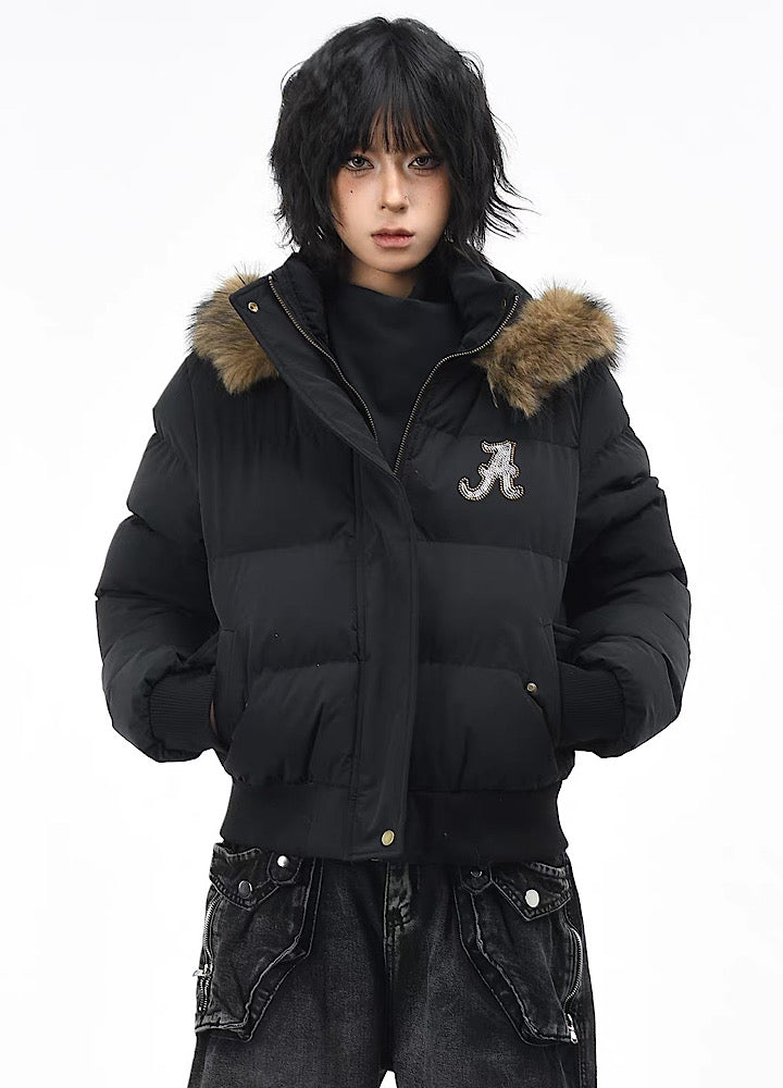 【OV】Basic design fur hoodie classic down jacket  OV0015