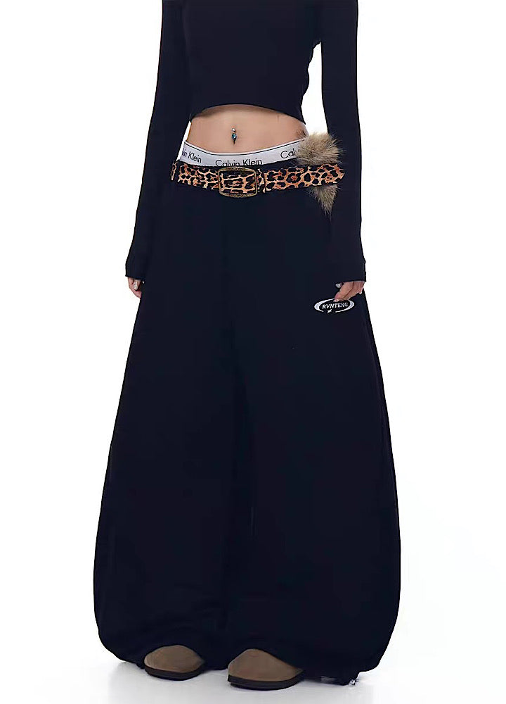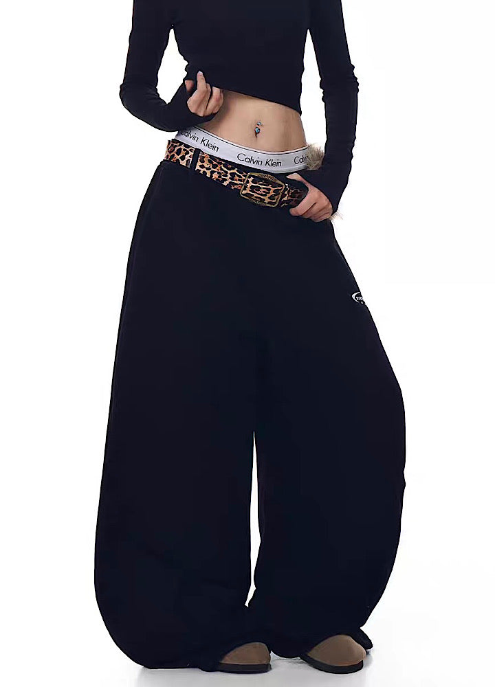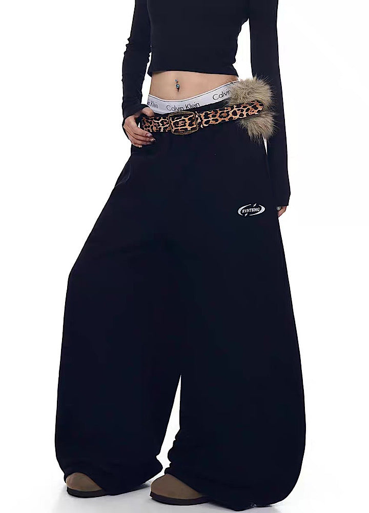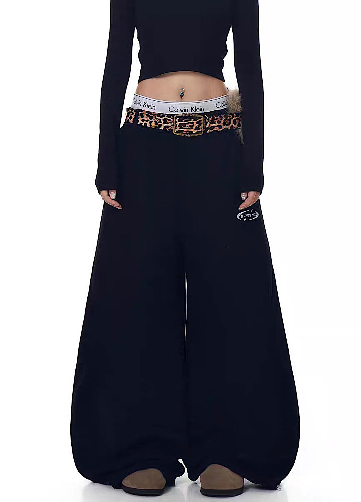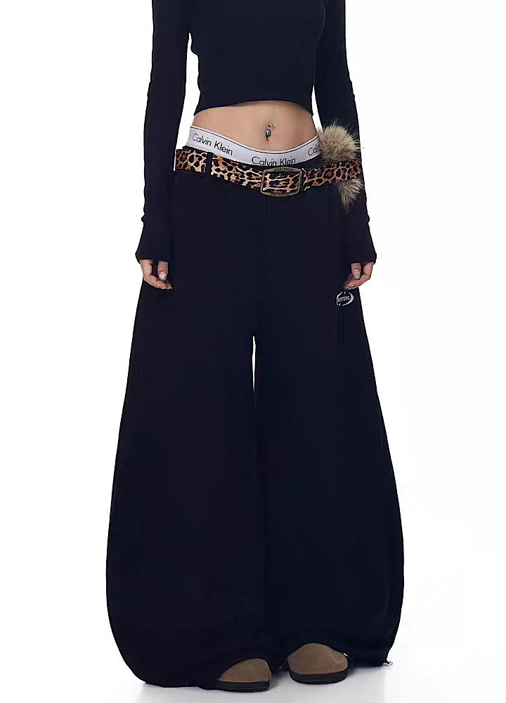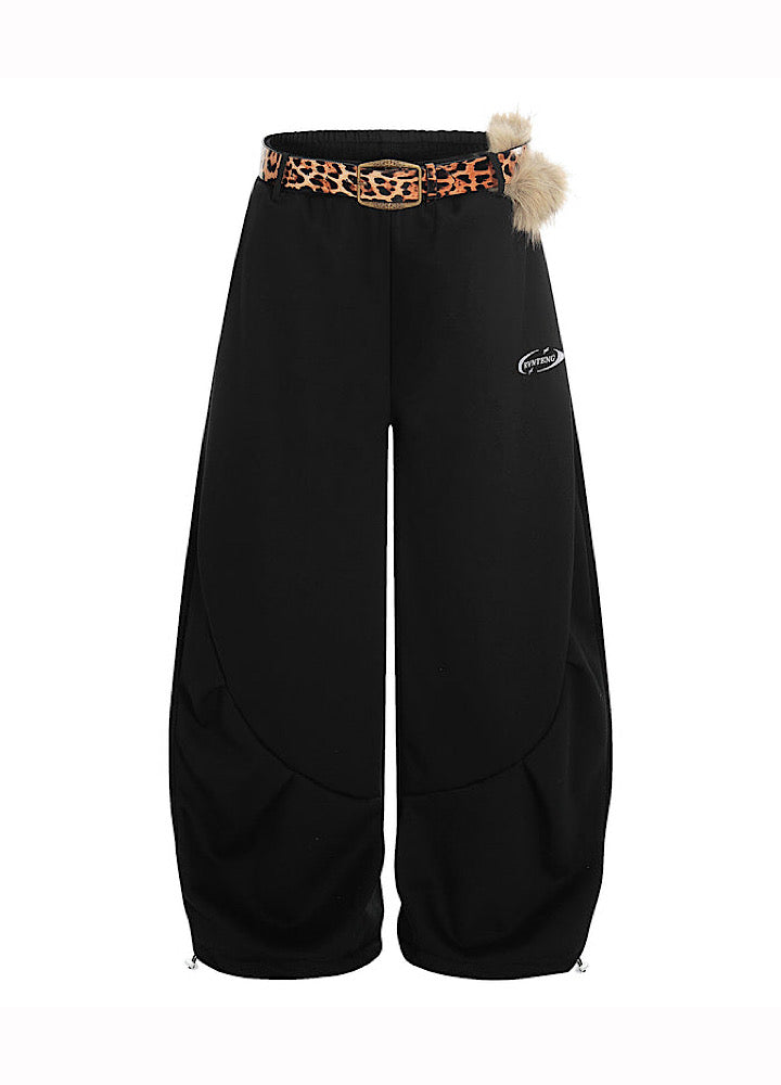 【Blacklists】Wide wave line design simple color leopard print belt plus sweatpants BL0074