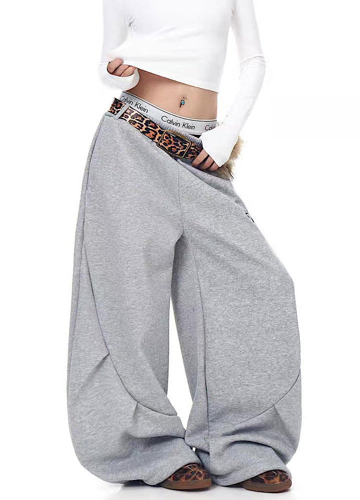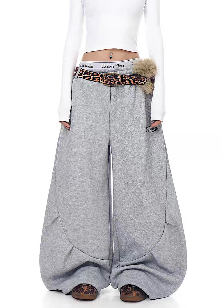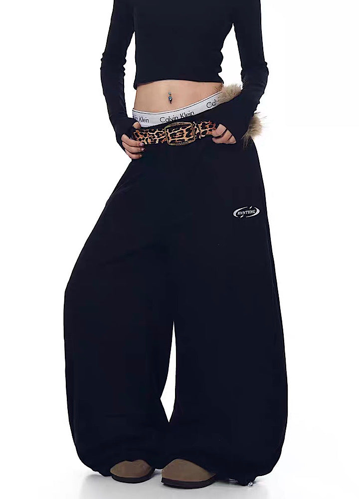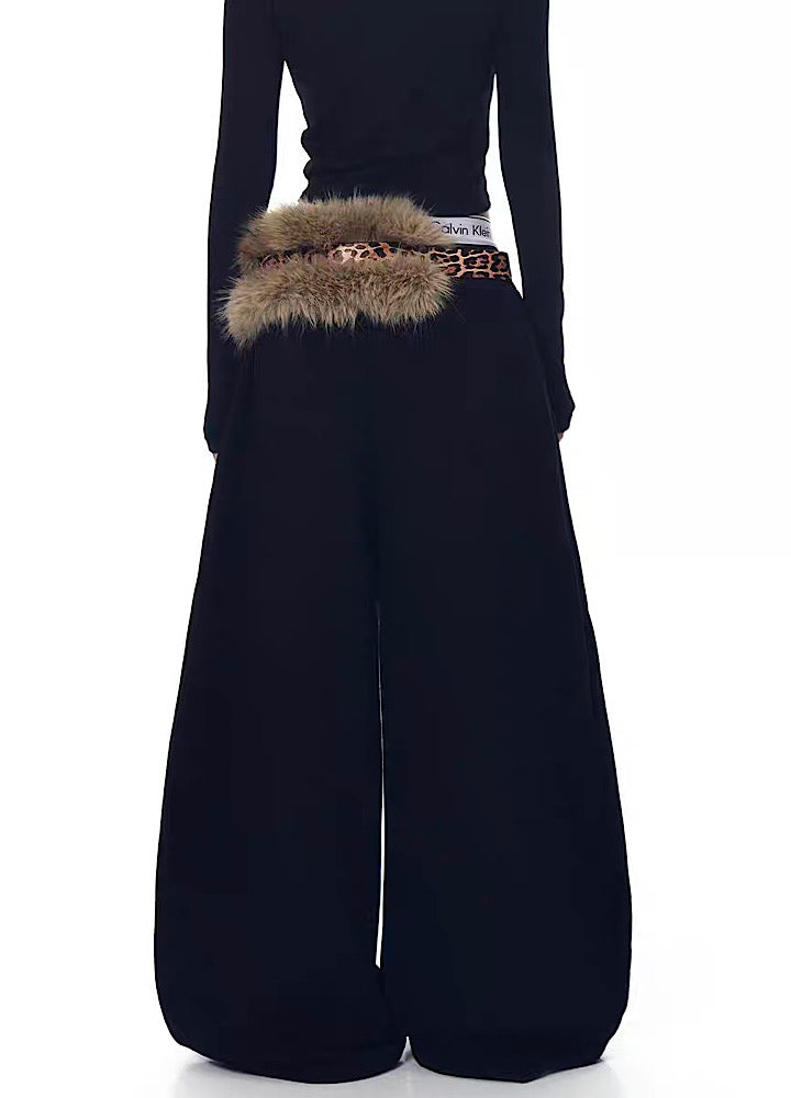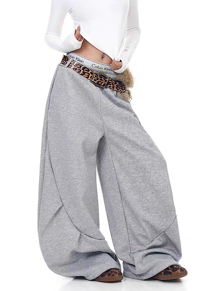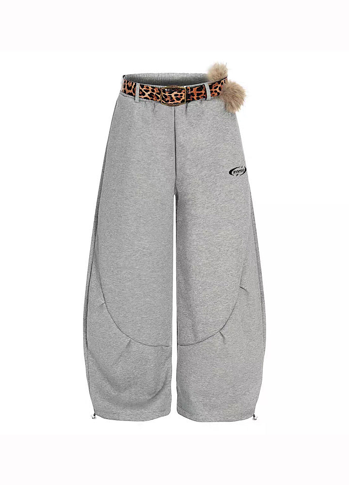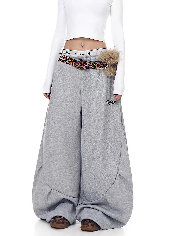 【Blacklists】Wide wave line design simple color leopard print belt plus sweatpants BL0074