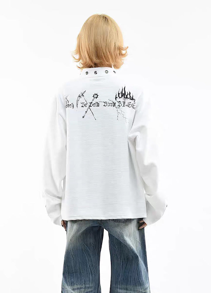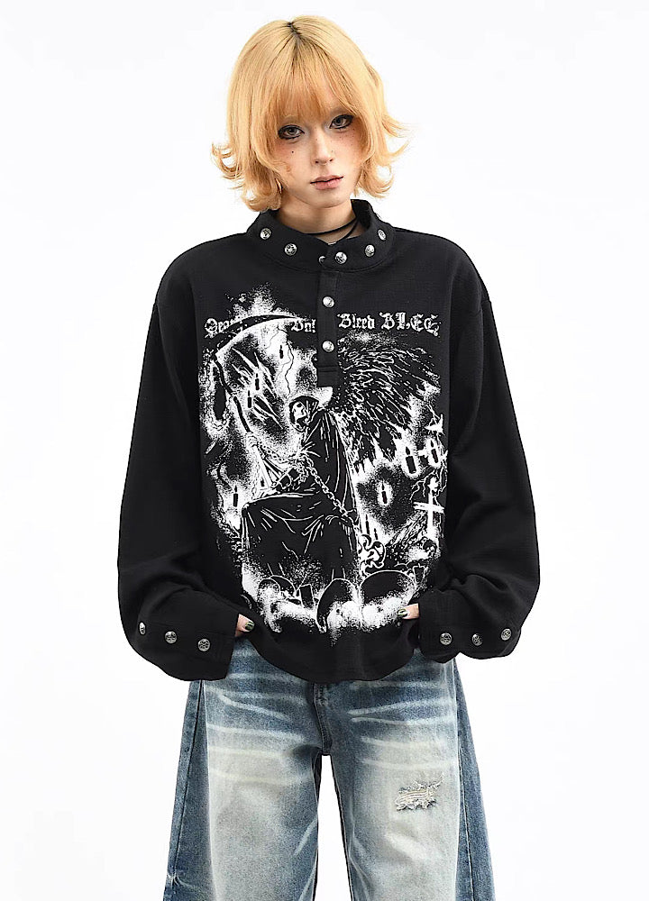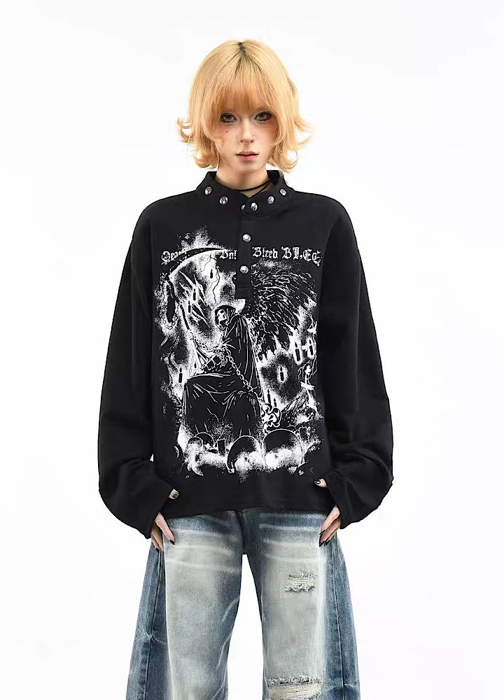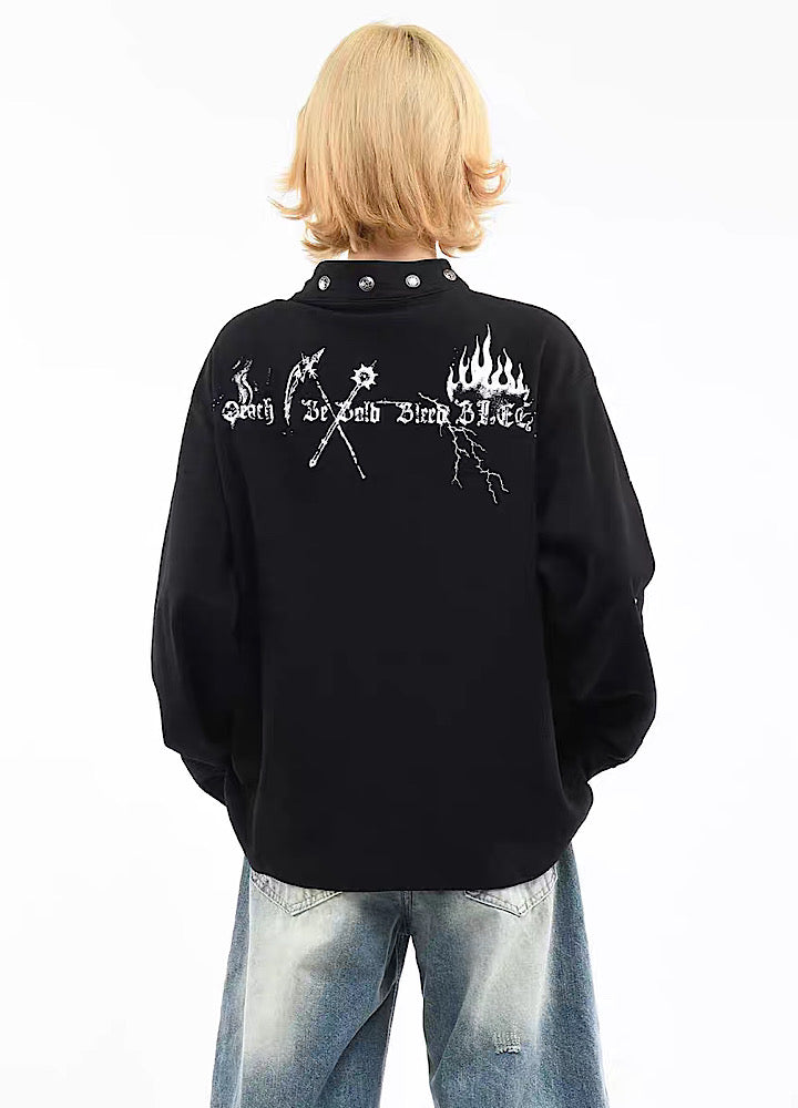 【OV】Front punk design with metal parts long sleeve T-shirt OV0022
