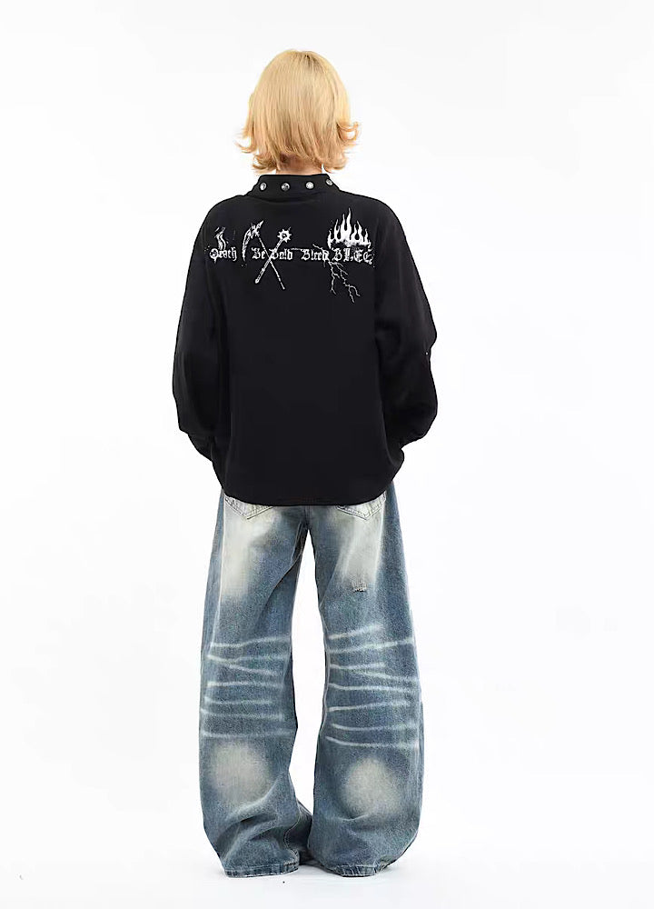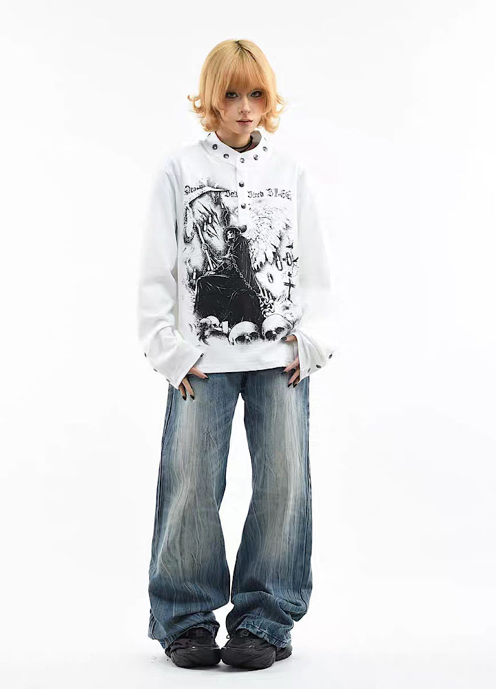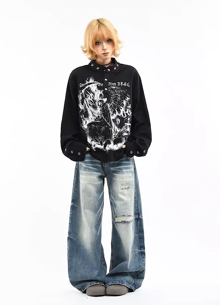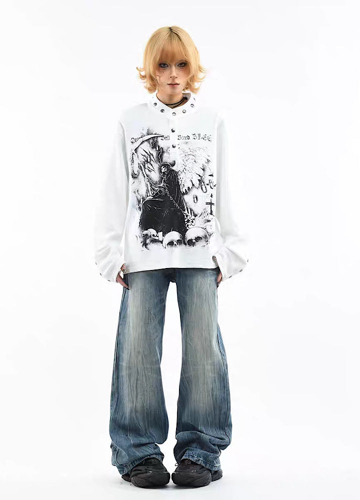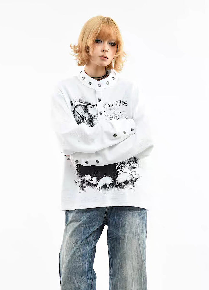 【OV】Front punk design with metal parts long sleeve T-shirt OV0022