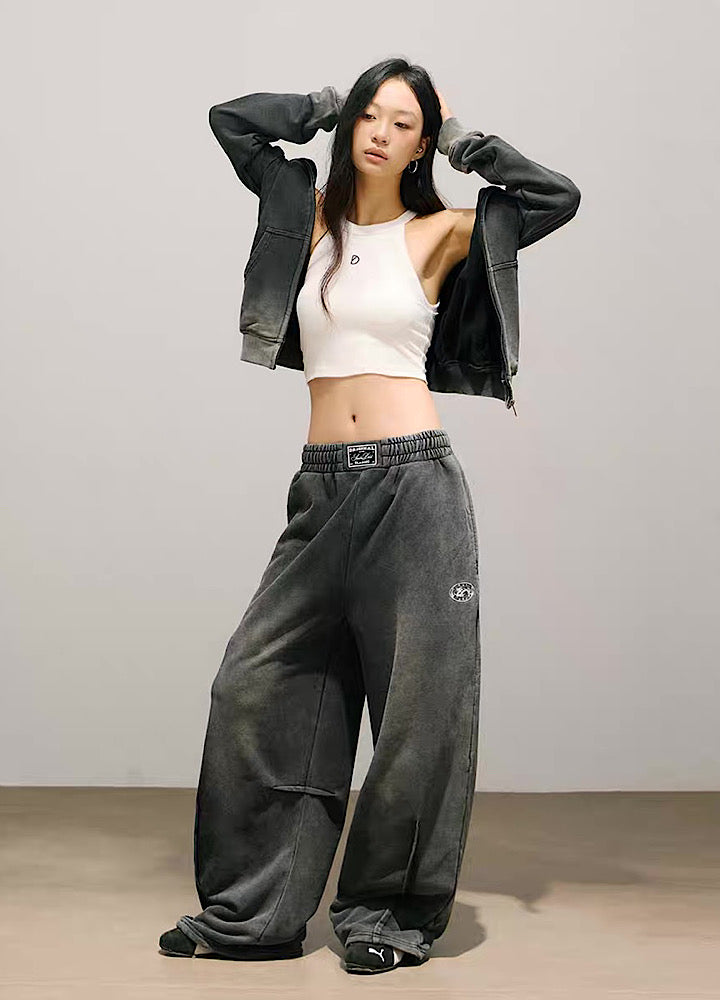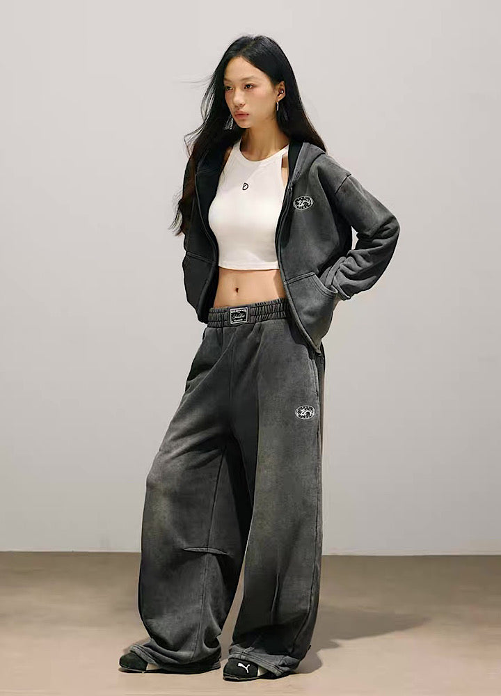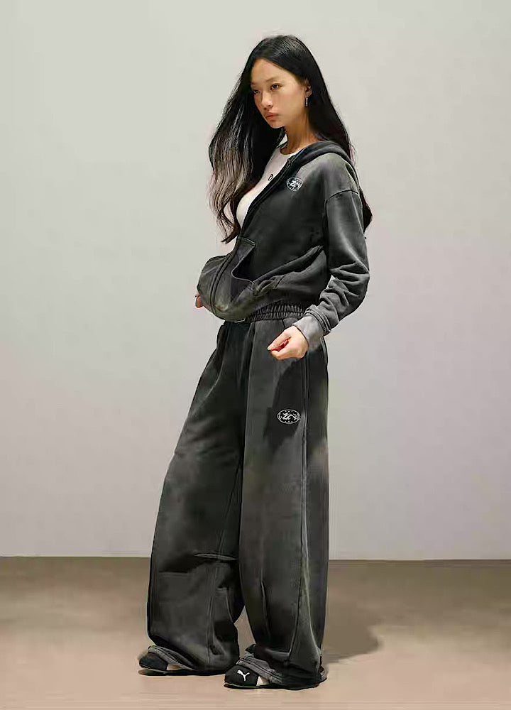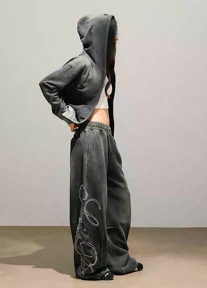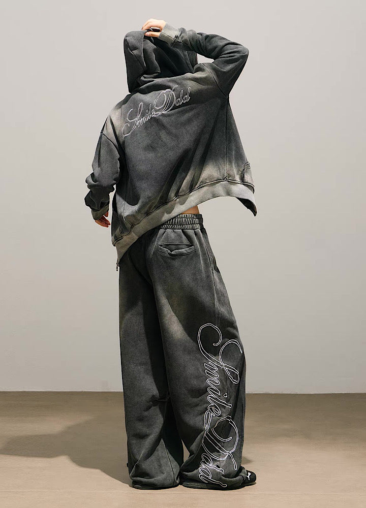 Stylish initial design on the back, washed sweatsuit setup  HL3221