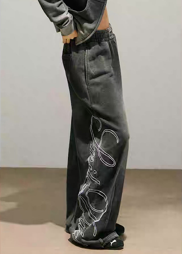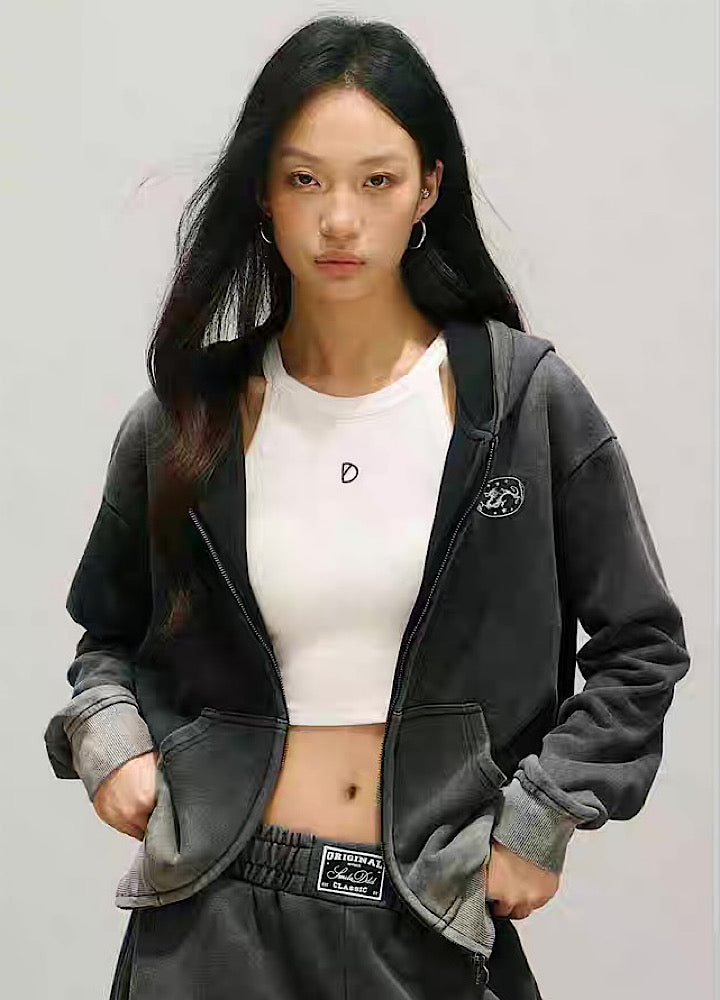 Stylish initial design on the back, washed sweatsuit setup HL3221