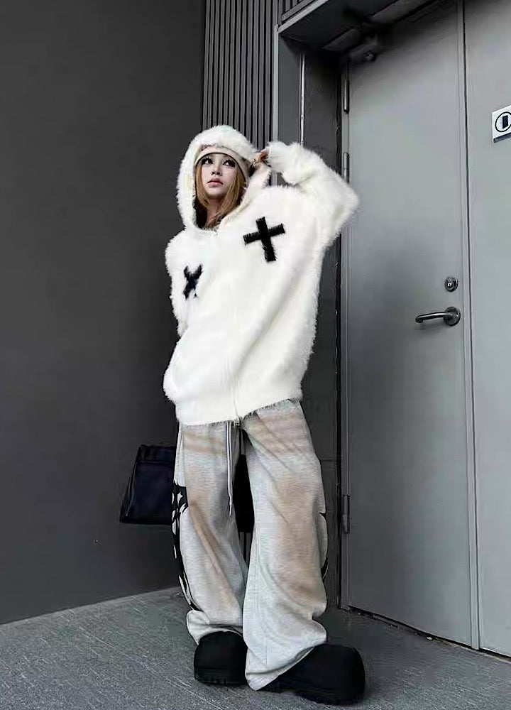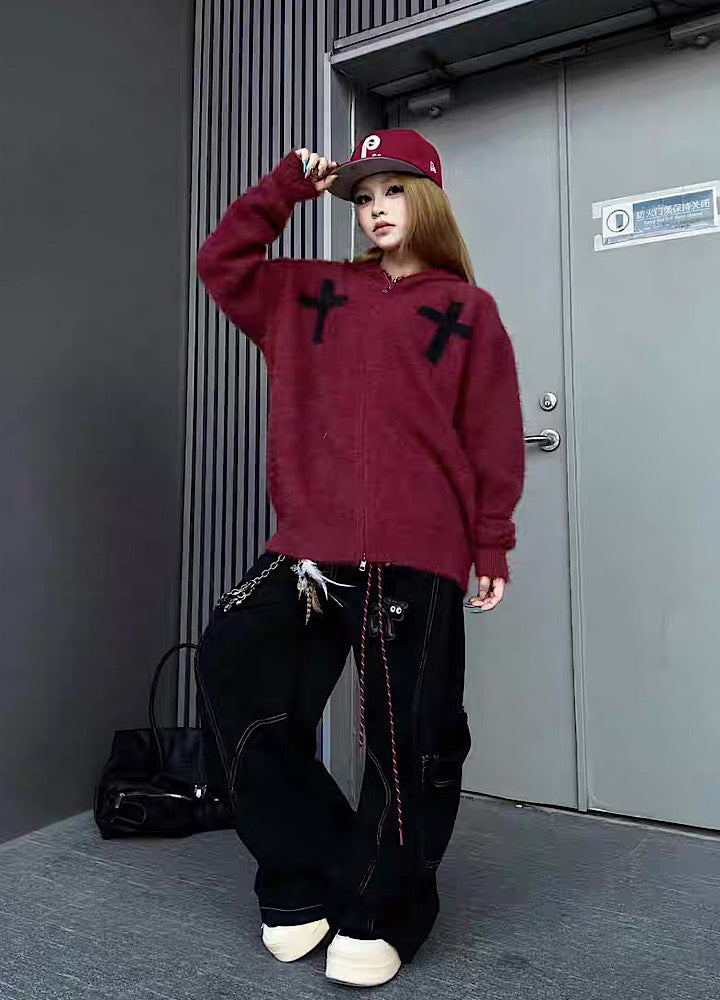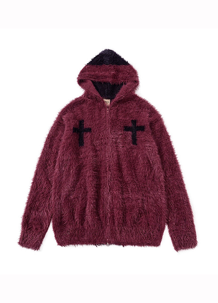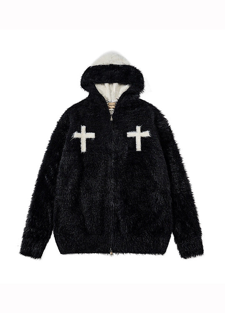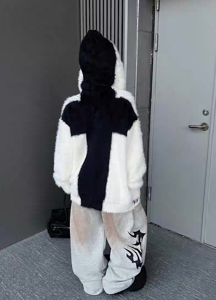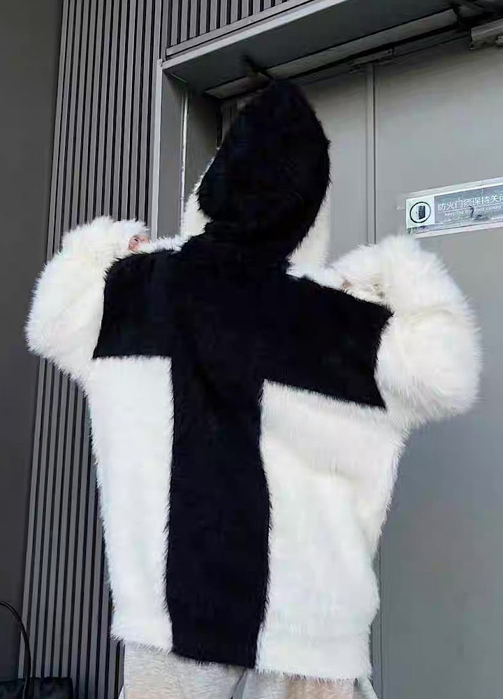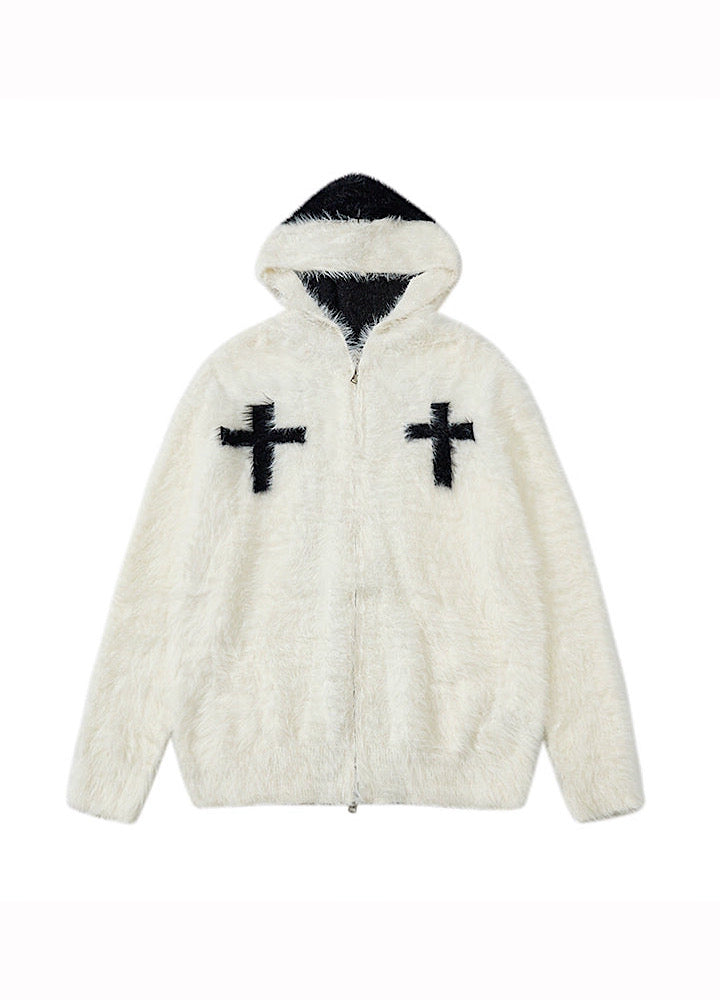 【TR BRUSHSHIFT】Front cross design double color point knit hoodie  TB0079