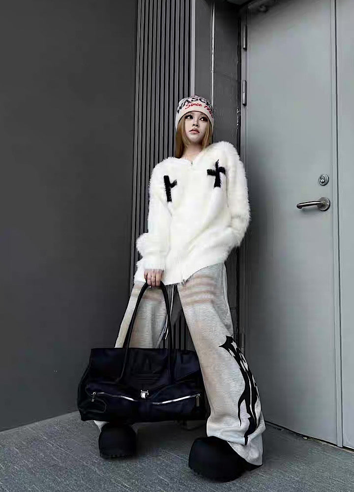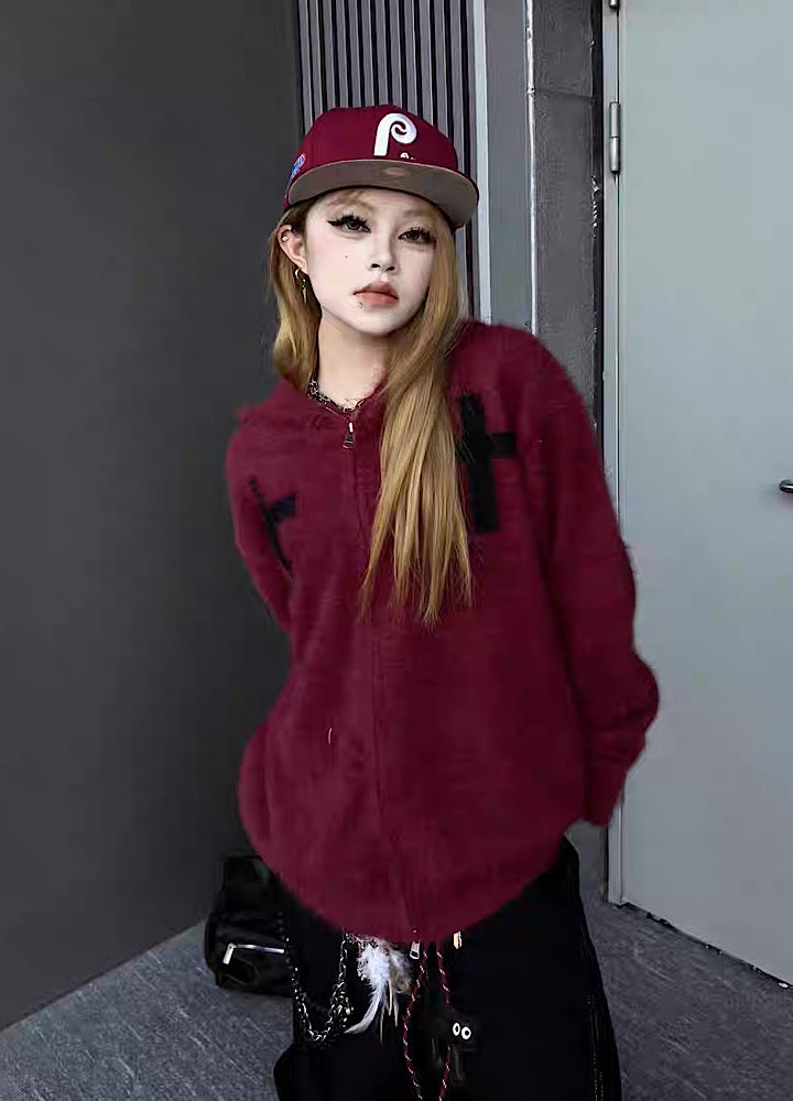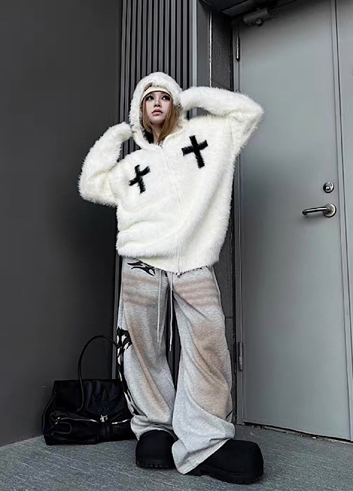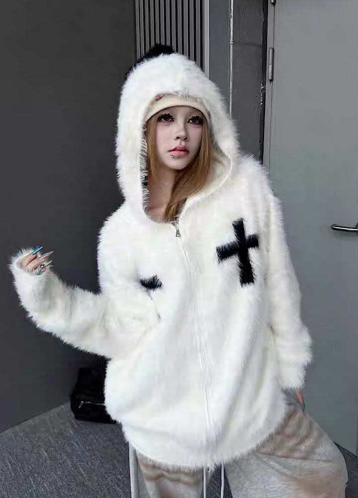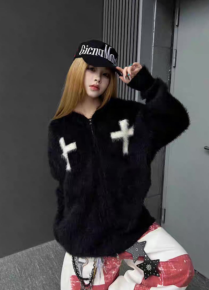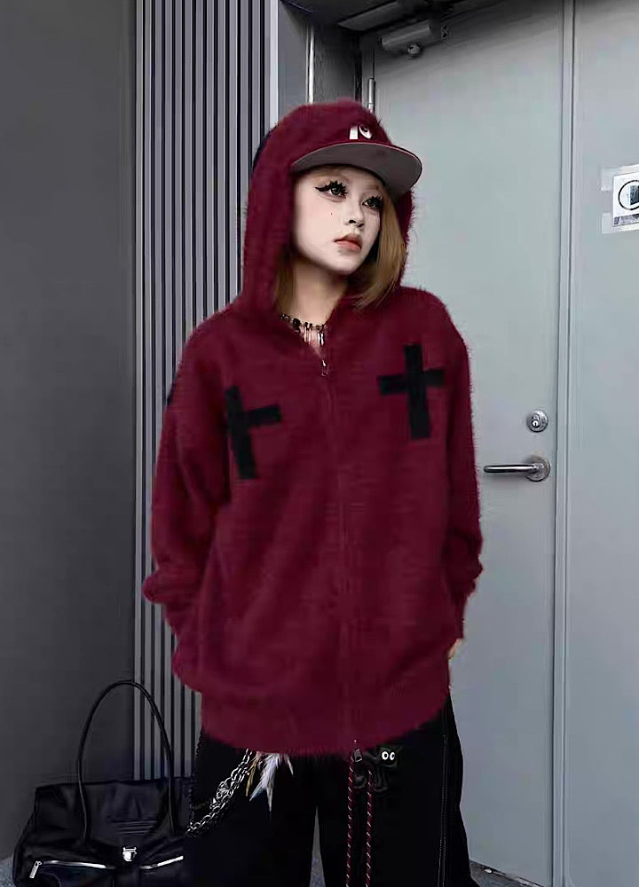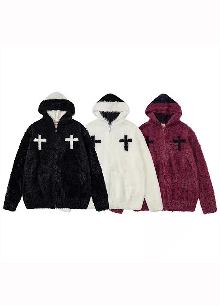 【TR BRUSHSHIFT】Front cross design double color point knit hoodie  TB0079