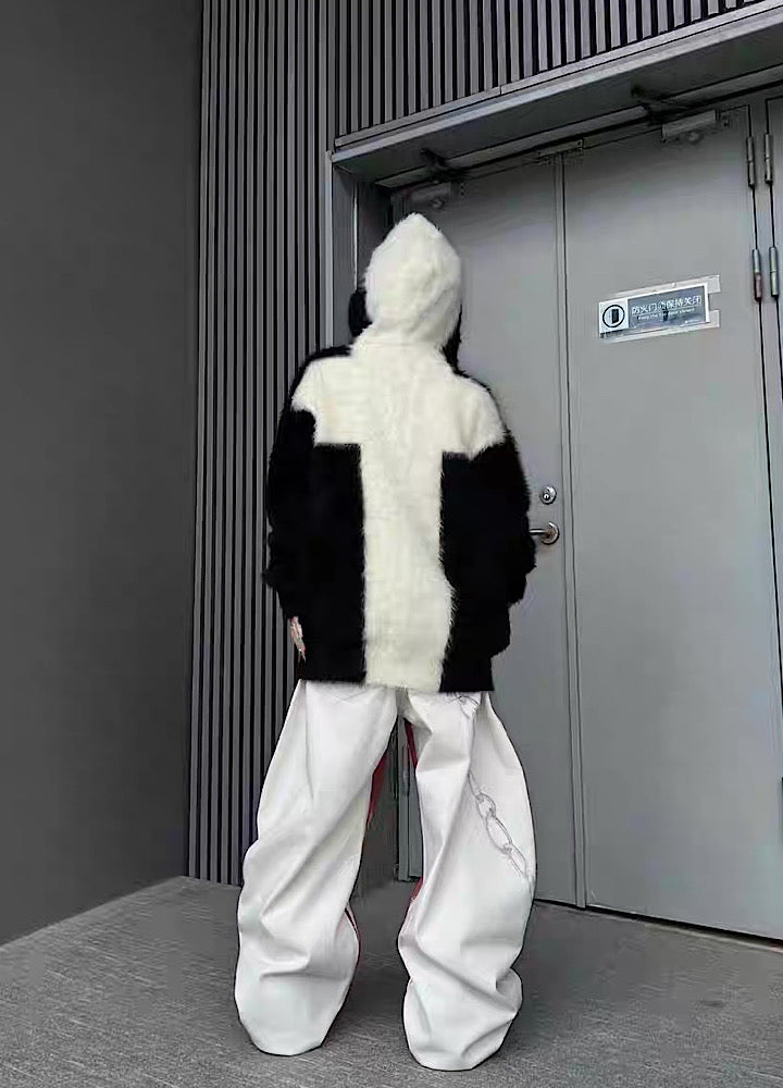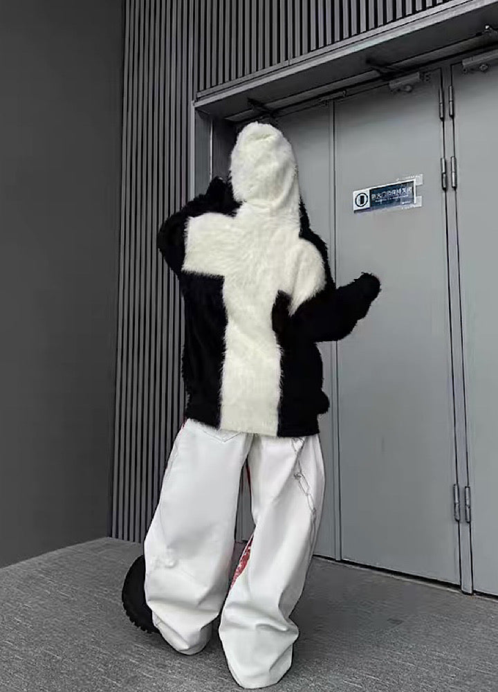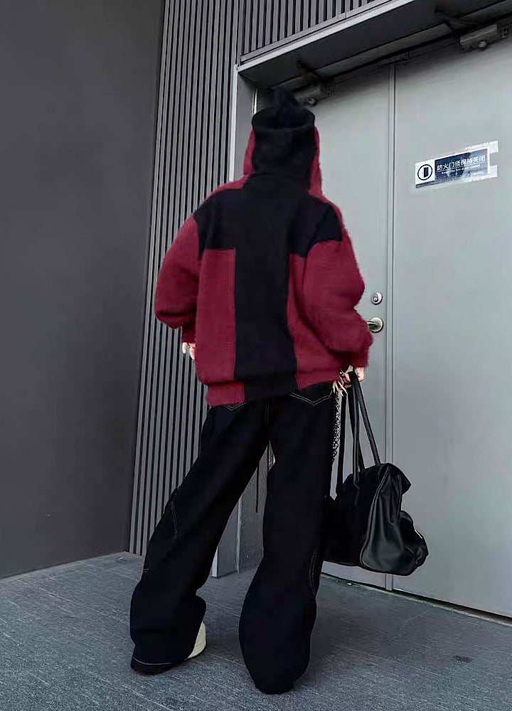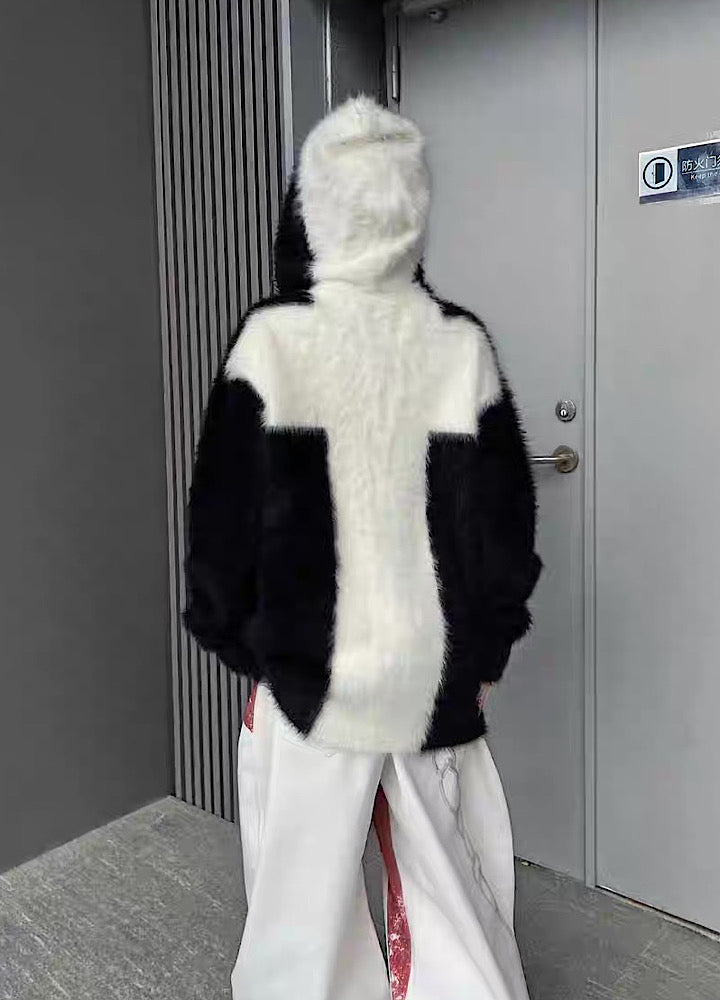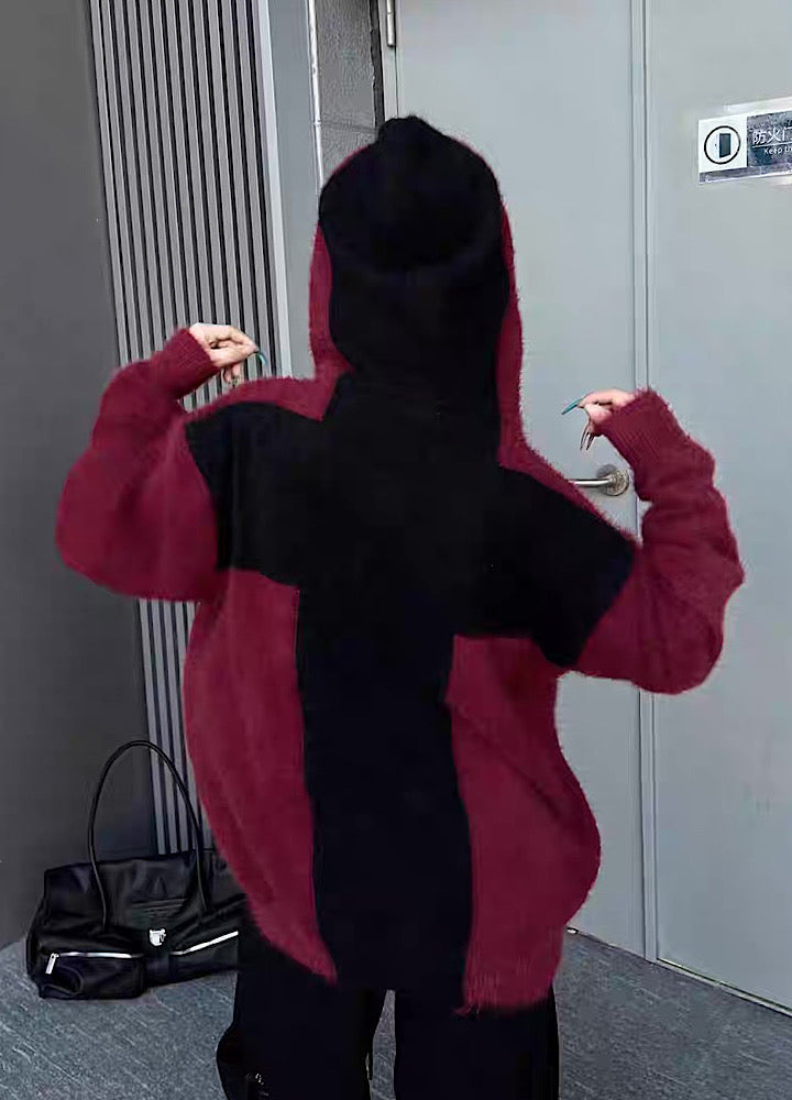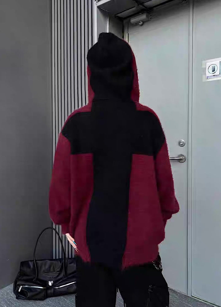 【TR BRUSHSHIFT】Front cross design double color point knit hoodie TB0079