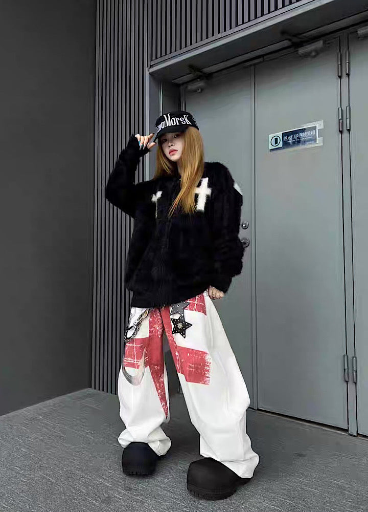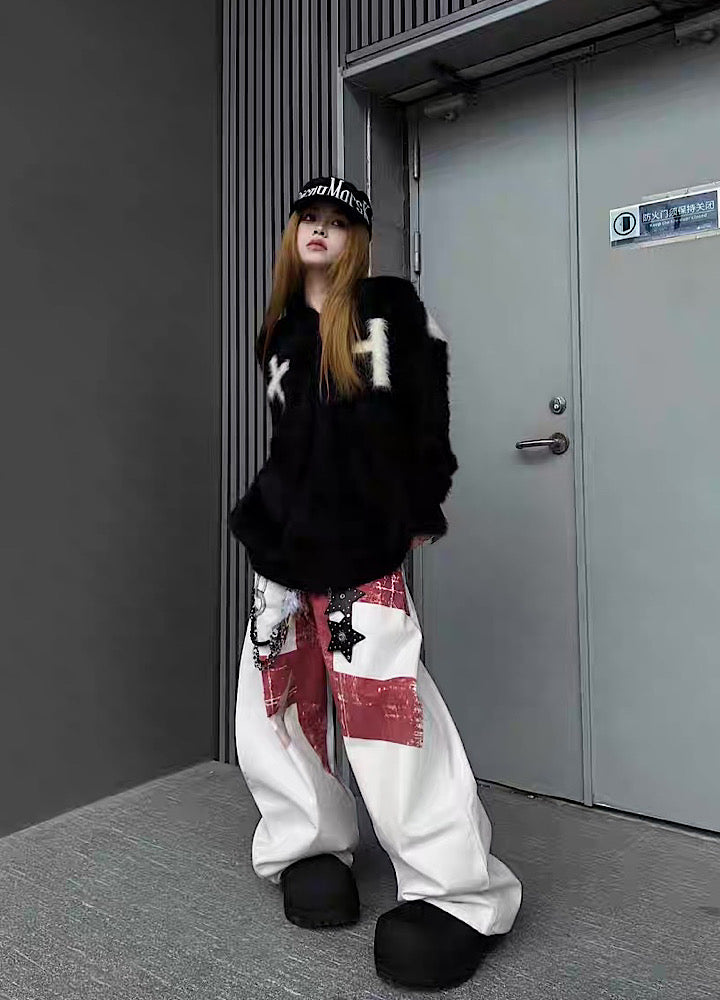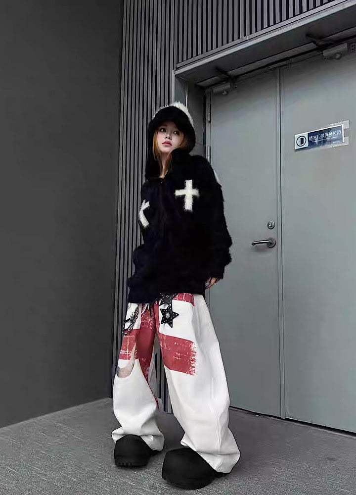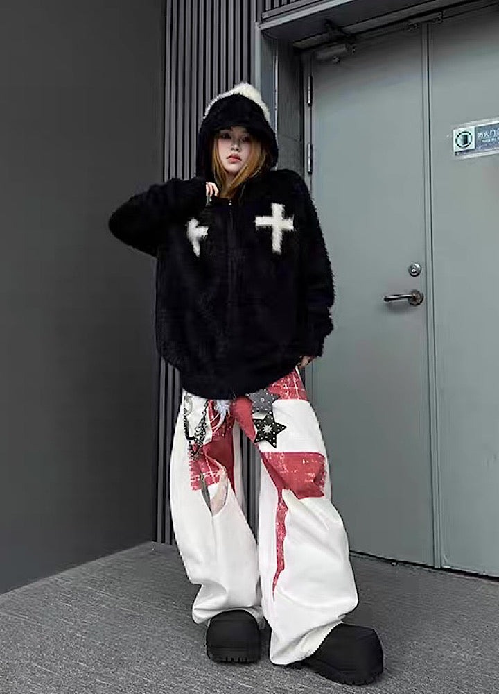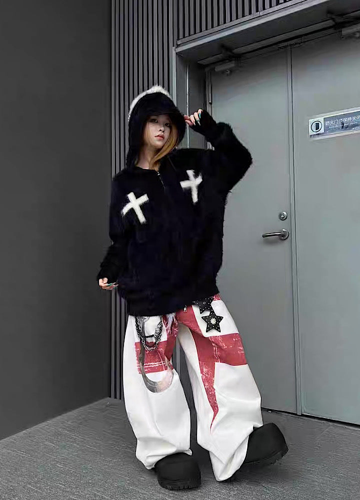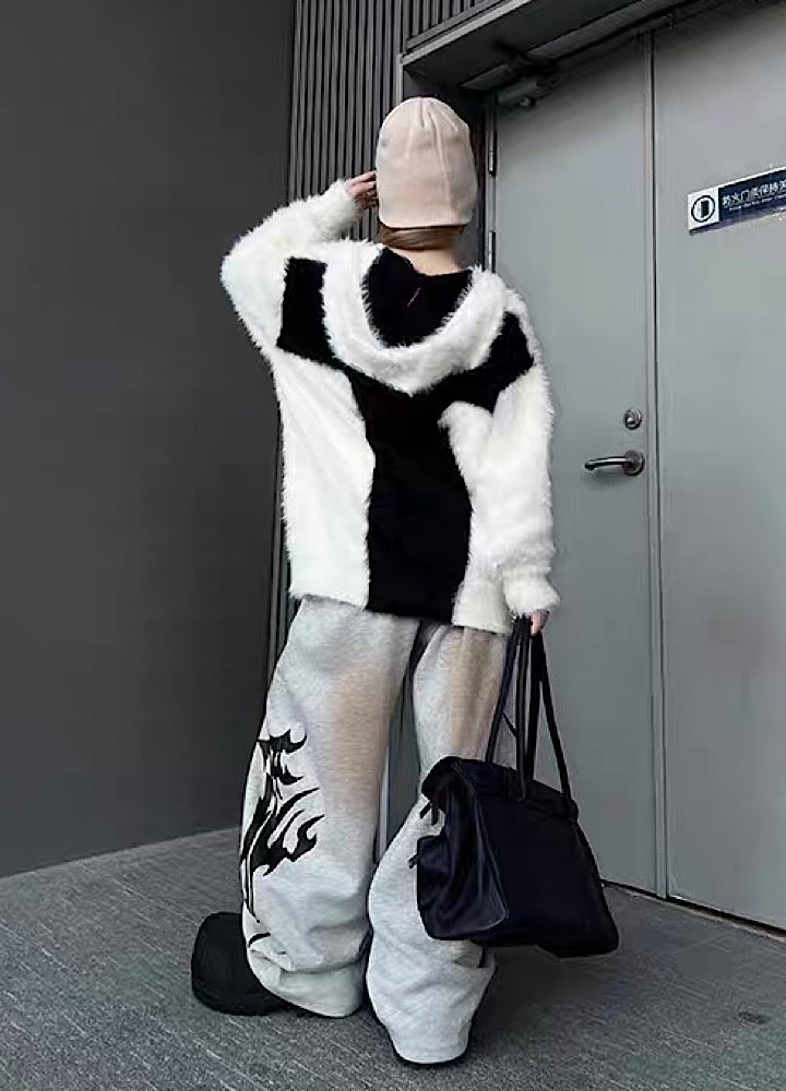 【TR BRUSHSHIFT】Front cross design double color point knit hoodie TB0079