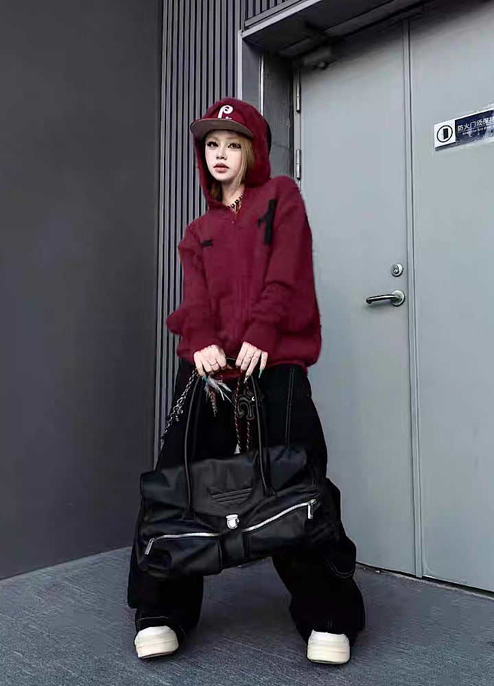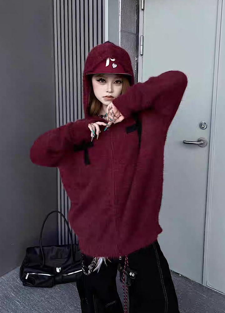 シンプルなデザインで構成されたニットパーカー。