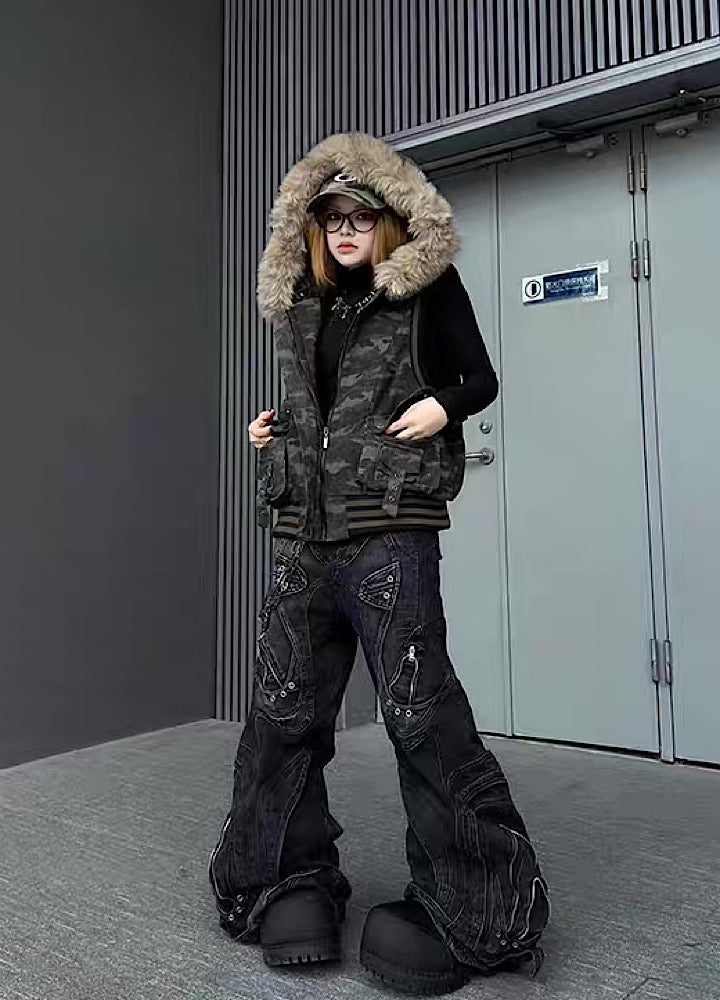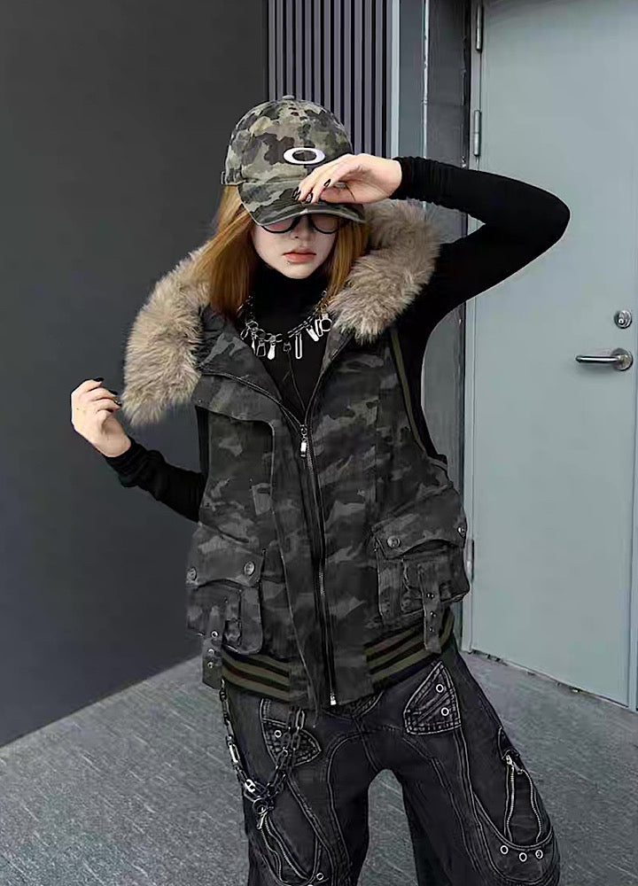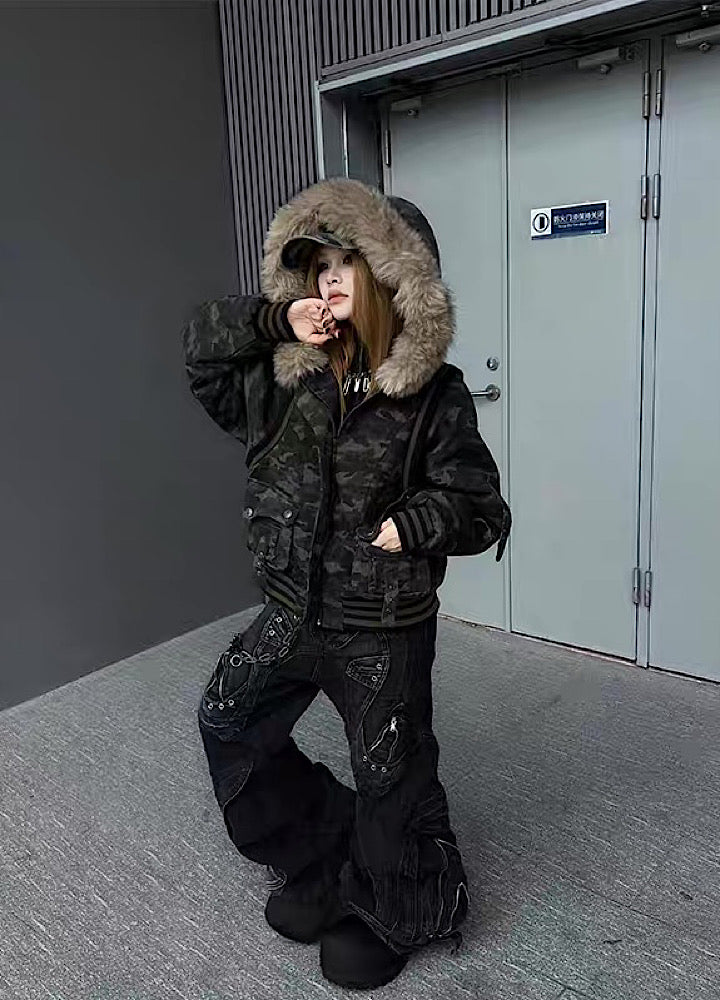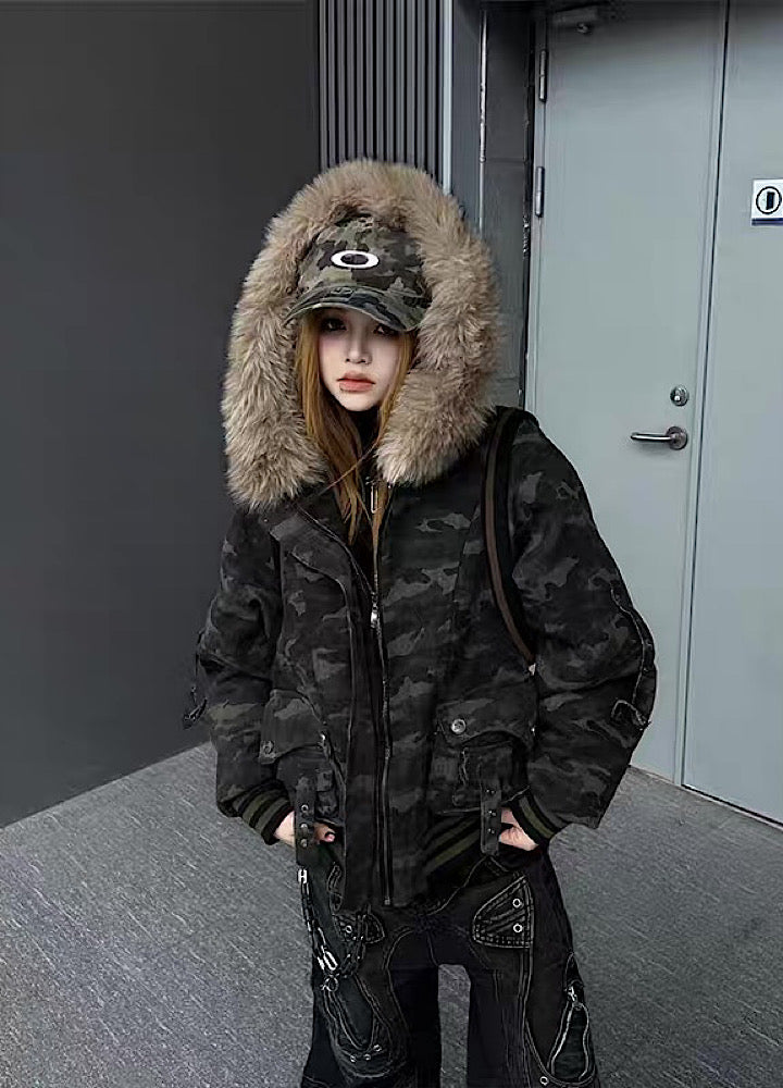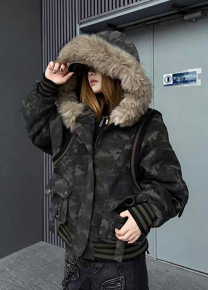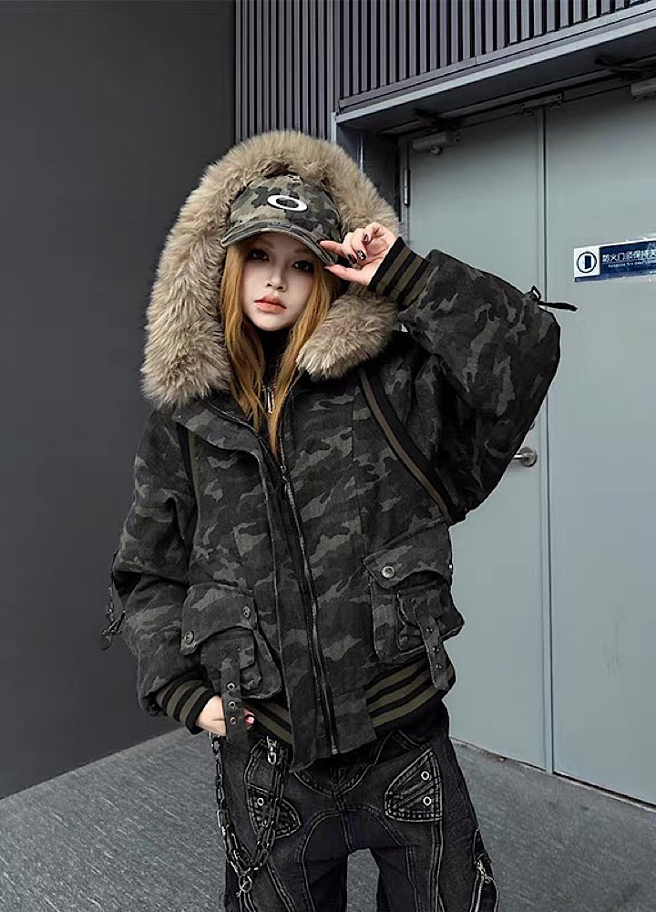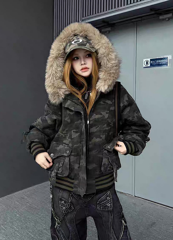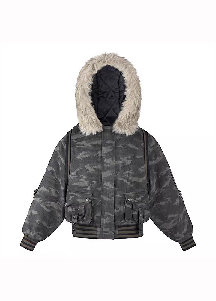 トレンド性の高い迷彩柄だけではなく、厚みのあるファーやダブルポケットなど魅力的。