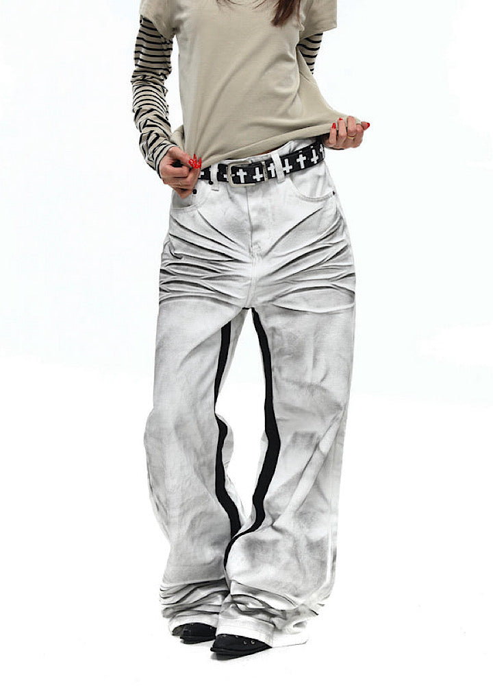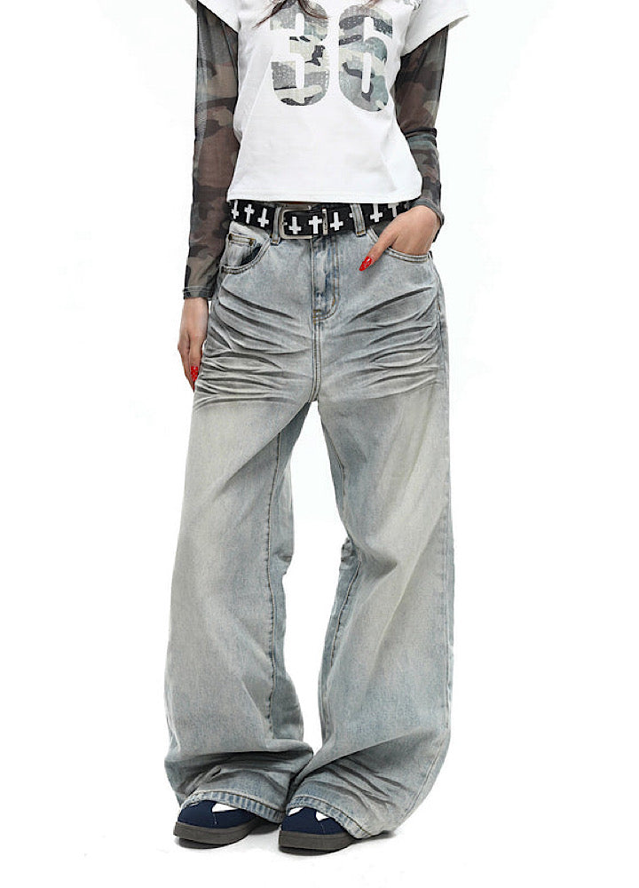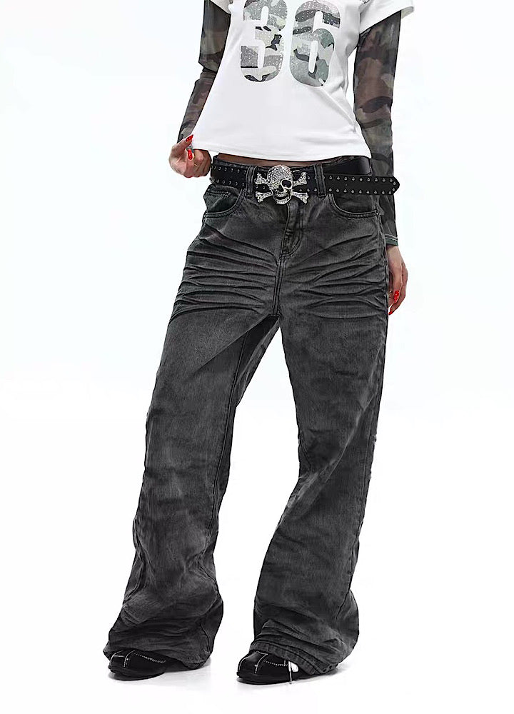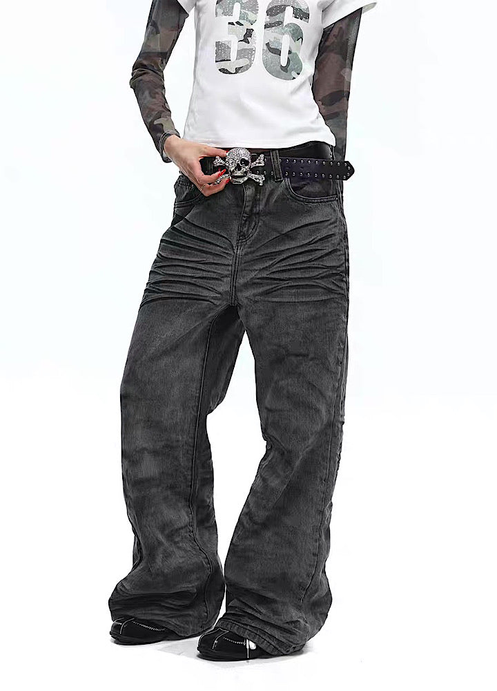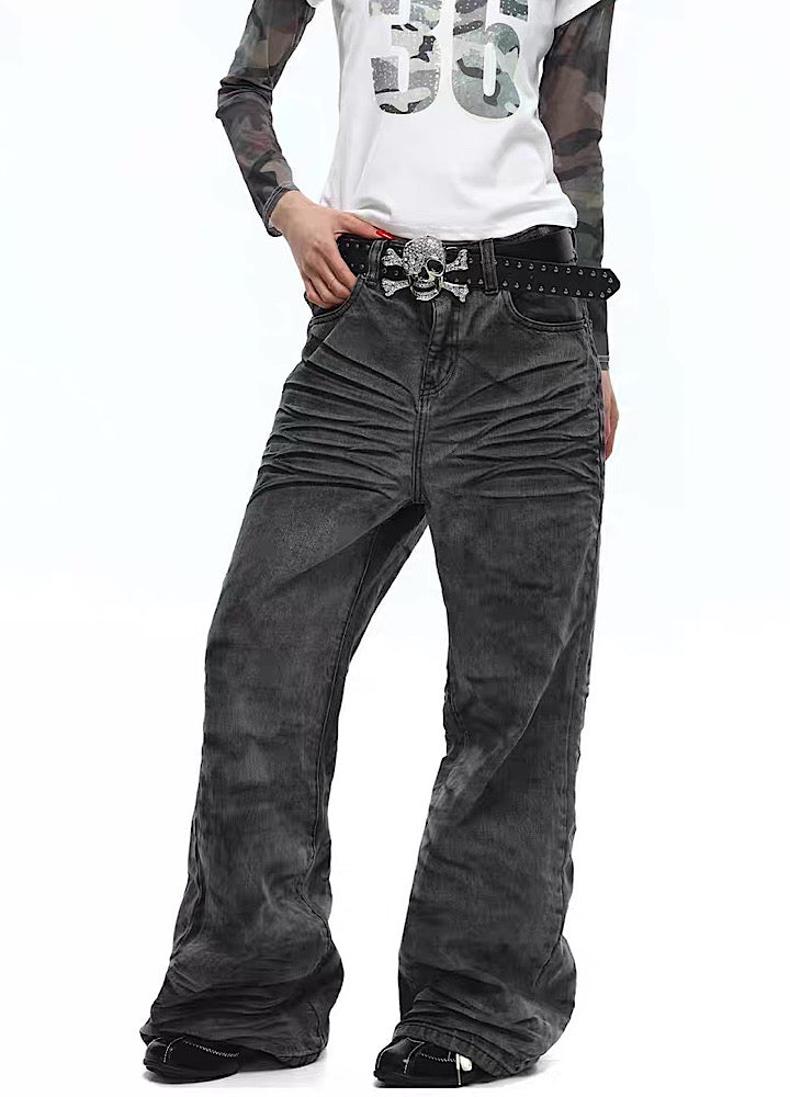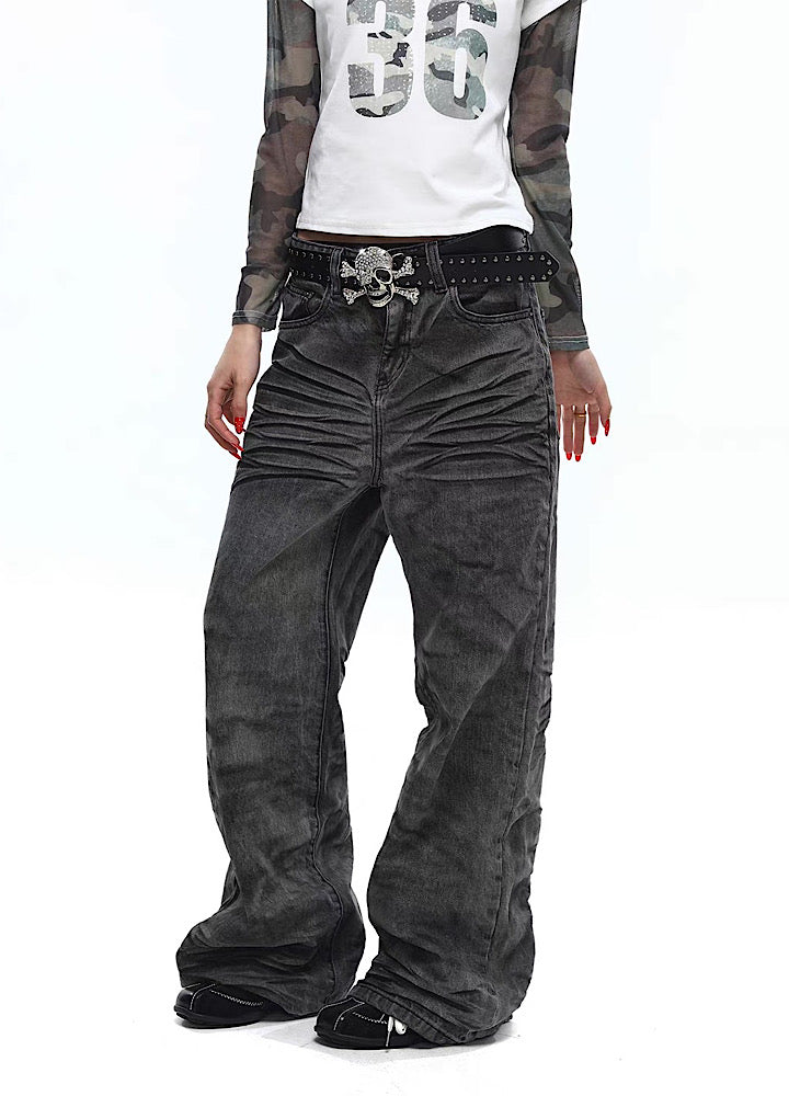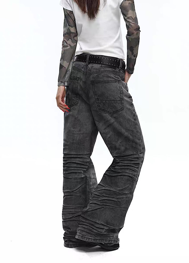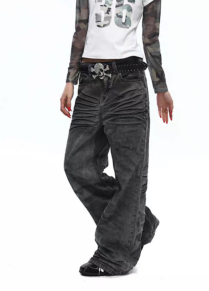 【BTSG】Simple design dark wash style mid-wide denim pants  BS0071