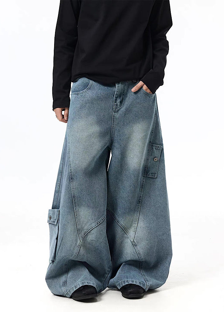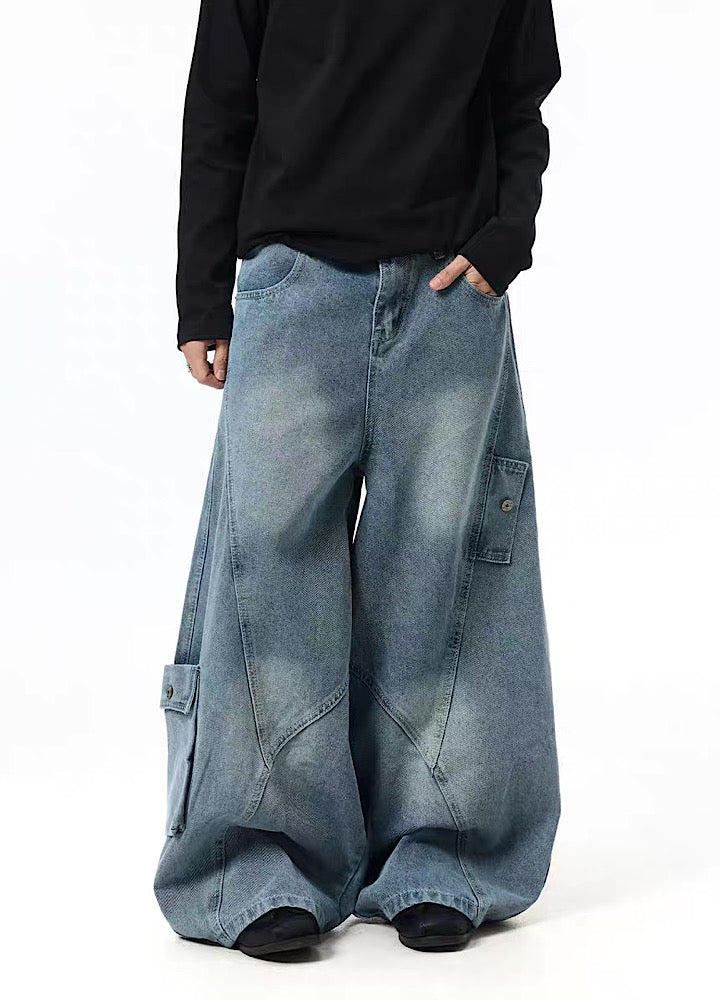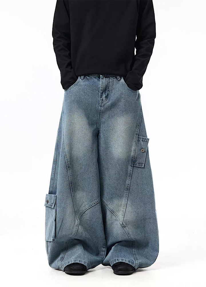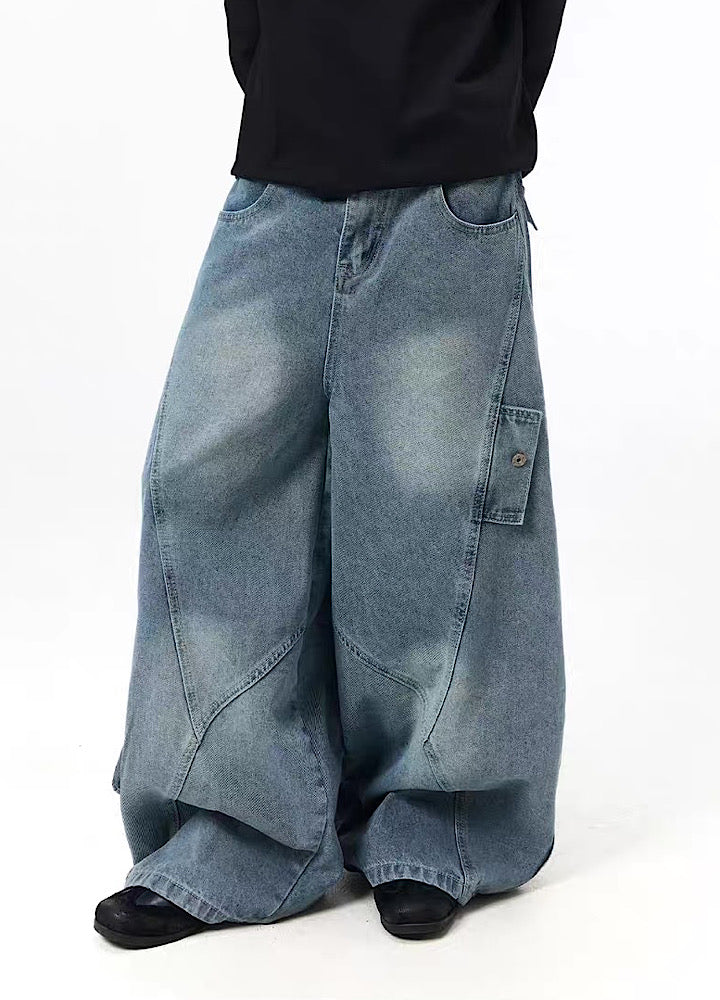 【BTSG】Over-wide silhouette design one-point card denim pants  BS0072