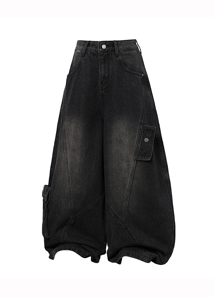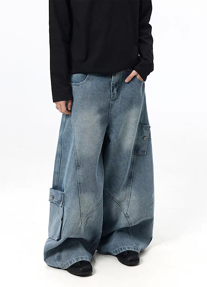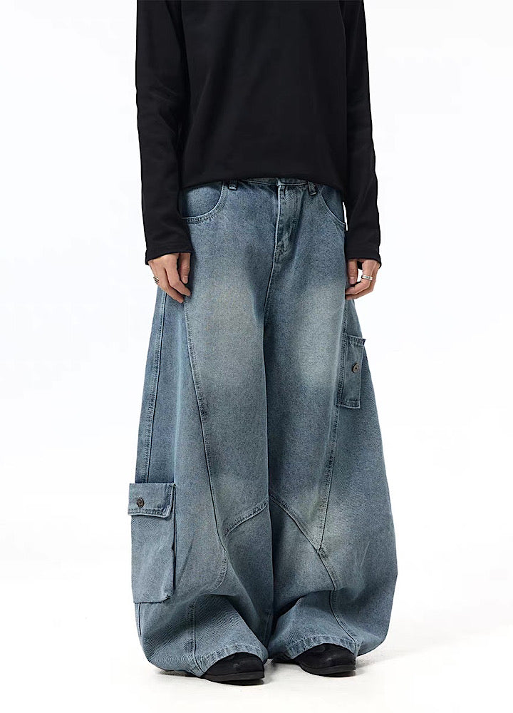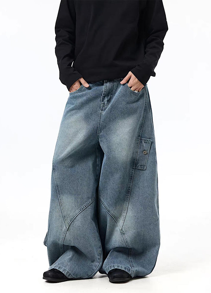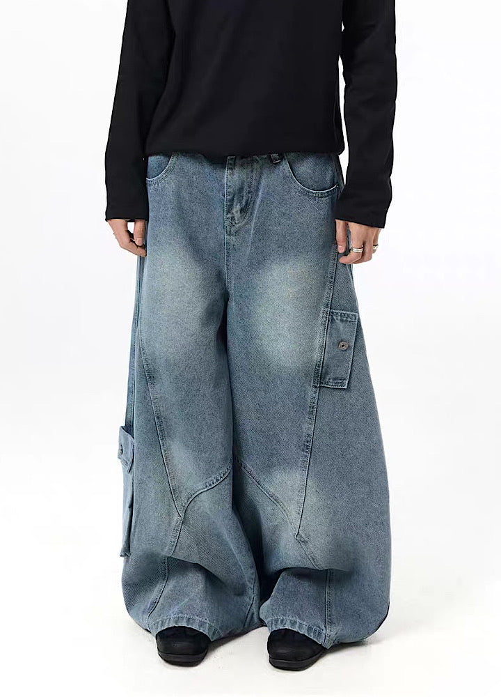 【BTSG】Over-wide silhouette design one-point card denim pants  BS0072