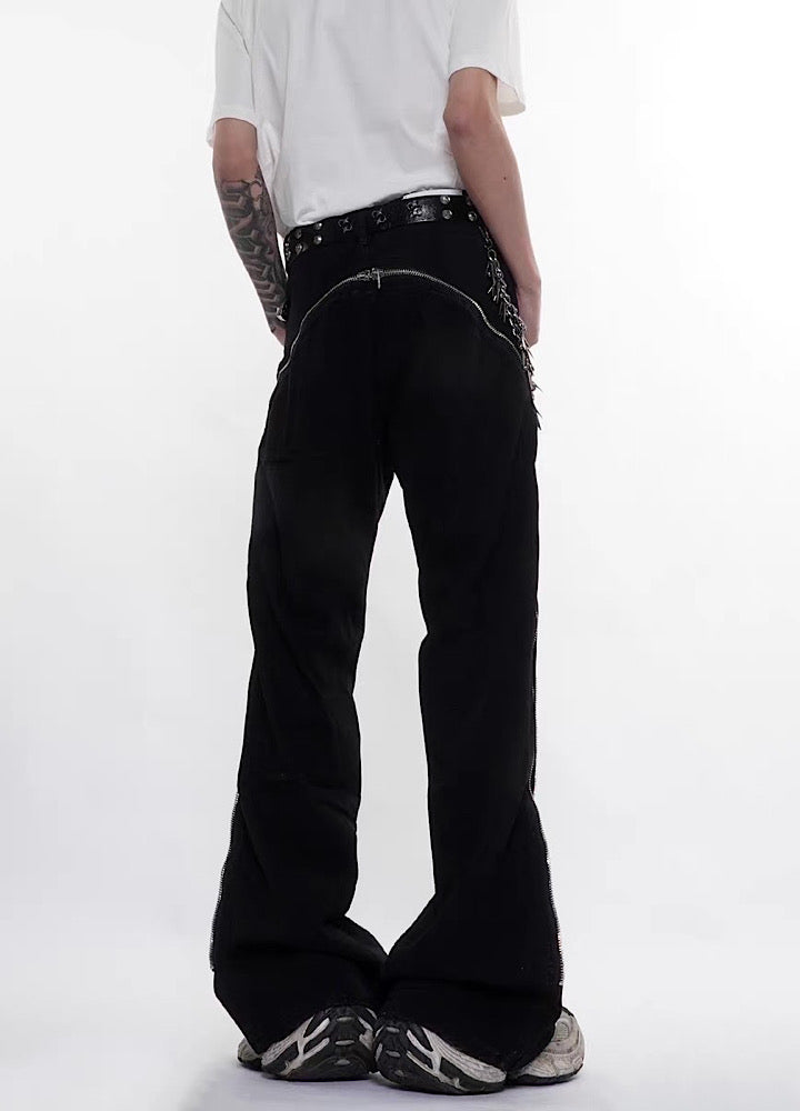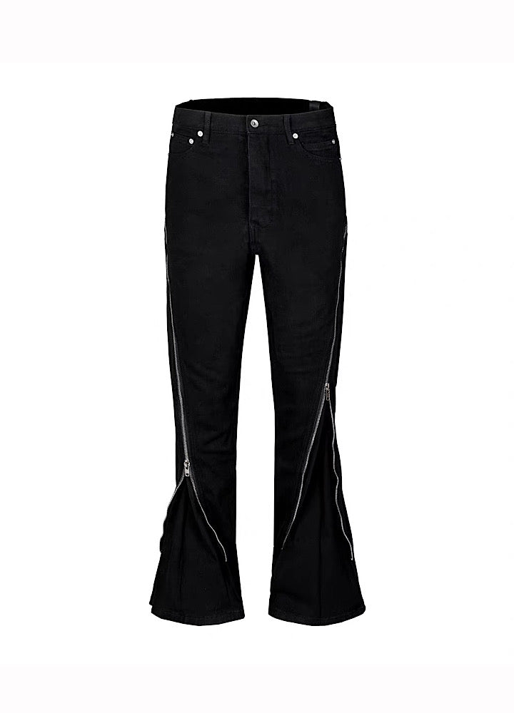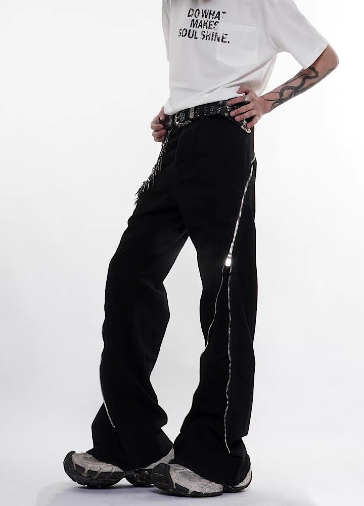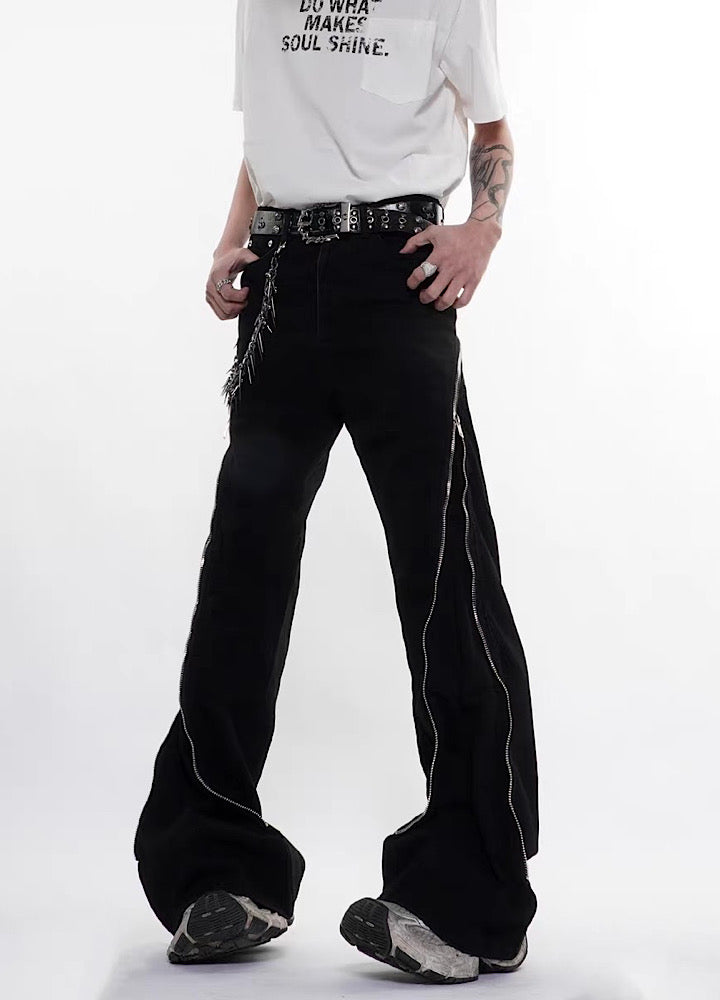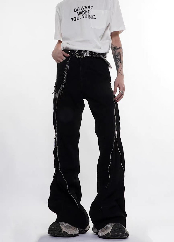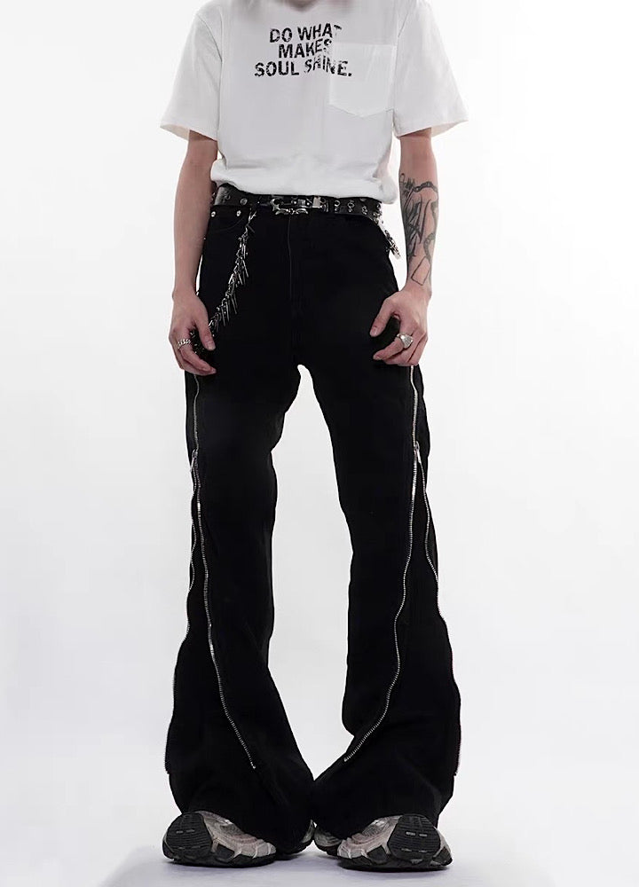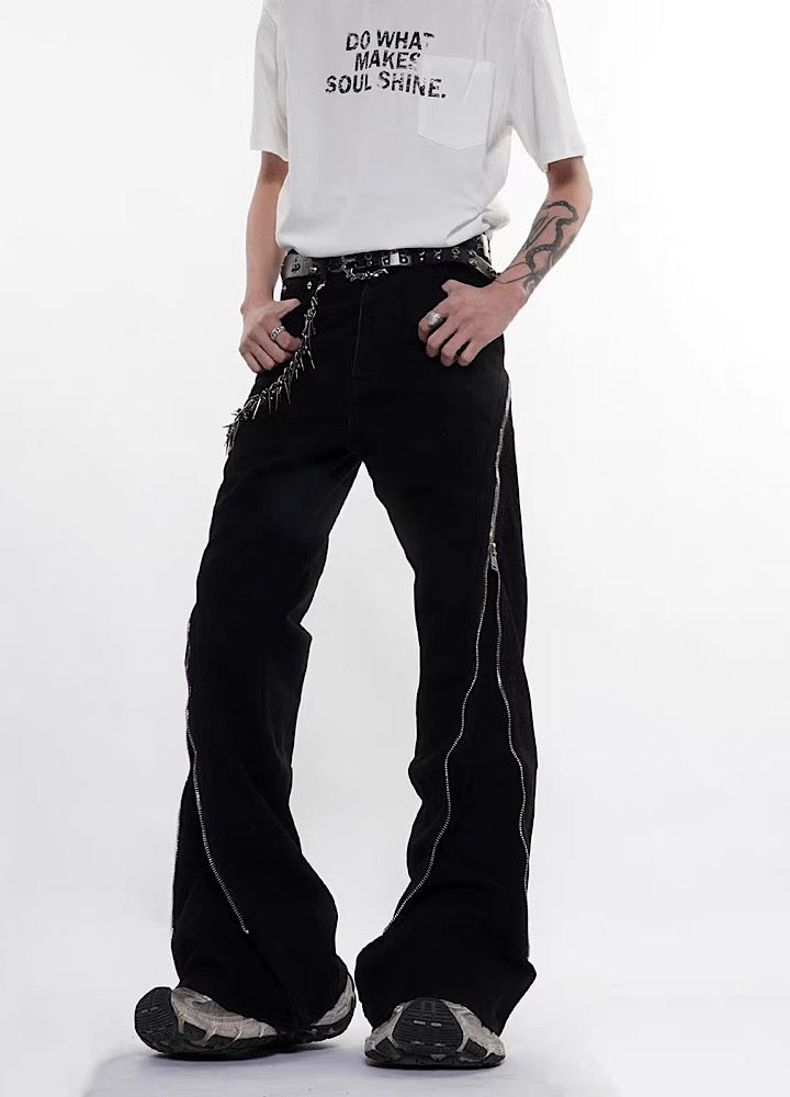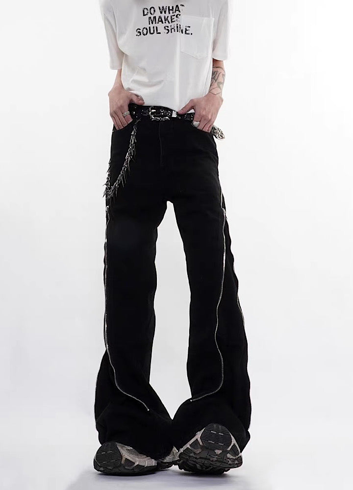 【76street】Side zipper design simple color wide flare denim pants  ST0018
