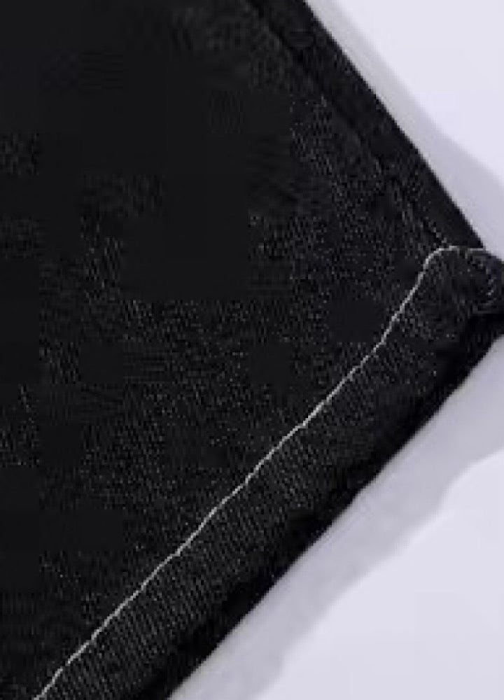 【Blacklists】Multi-belt buckle design black wide denim pants BL0068