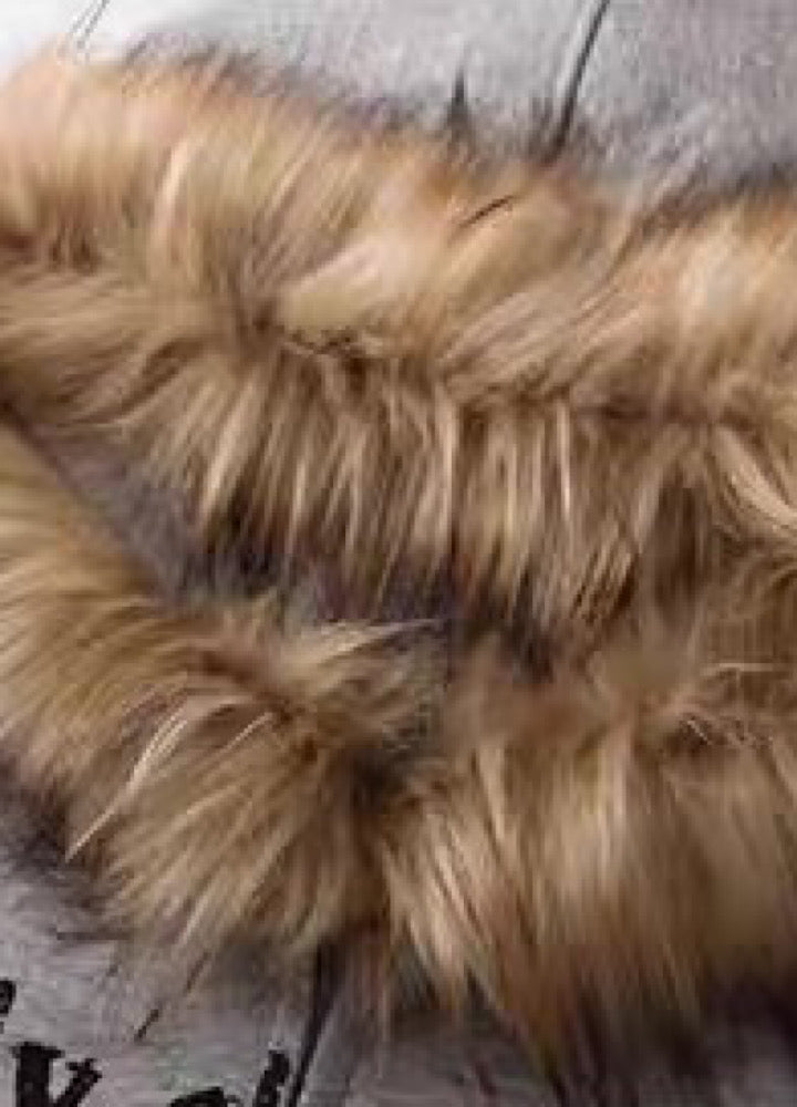 特徴的なイラストデザインが施されたファージャケットパーカー。